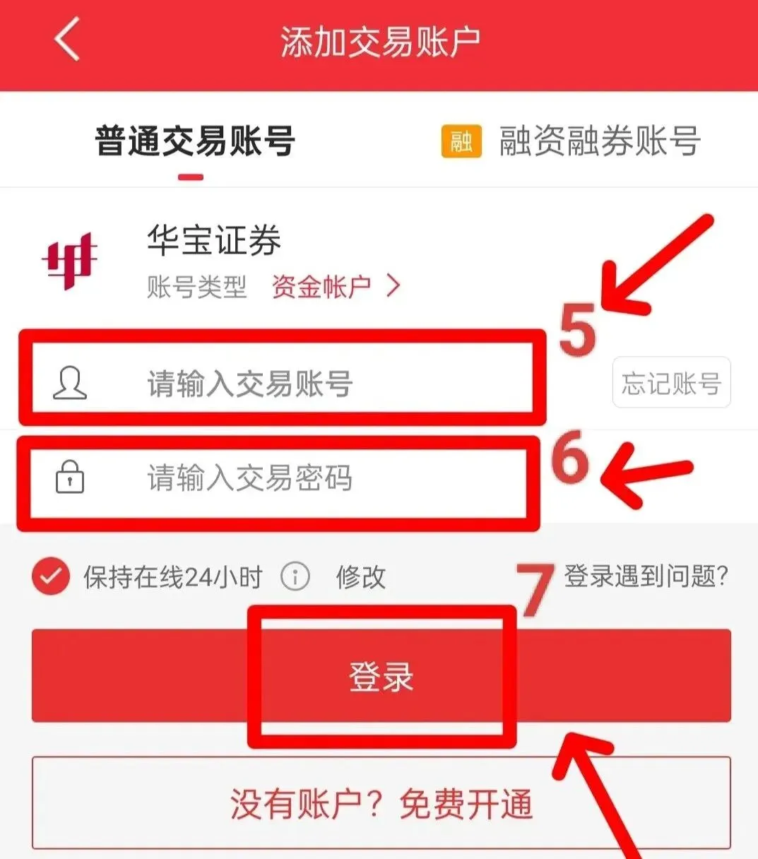 4.我们输入【交易账号】和【密码】,点击【登录】。