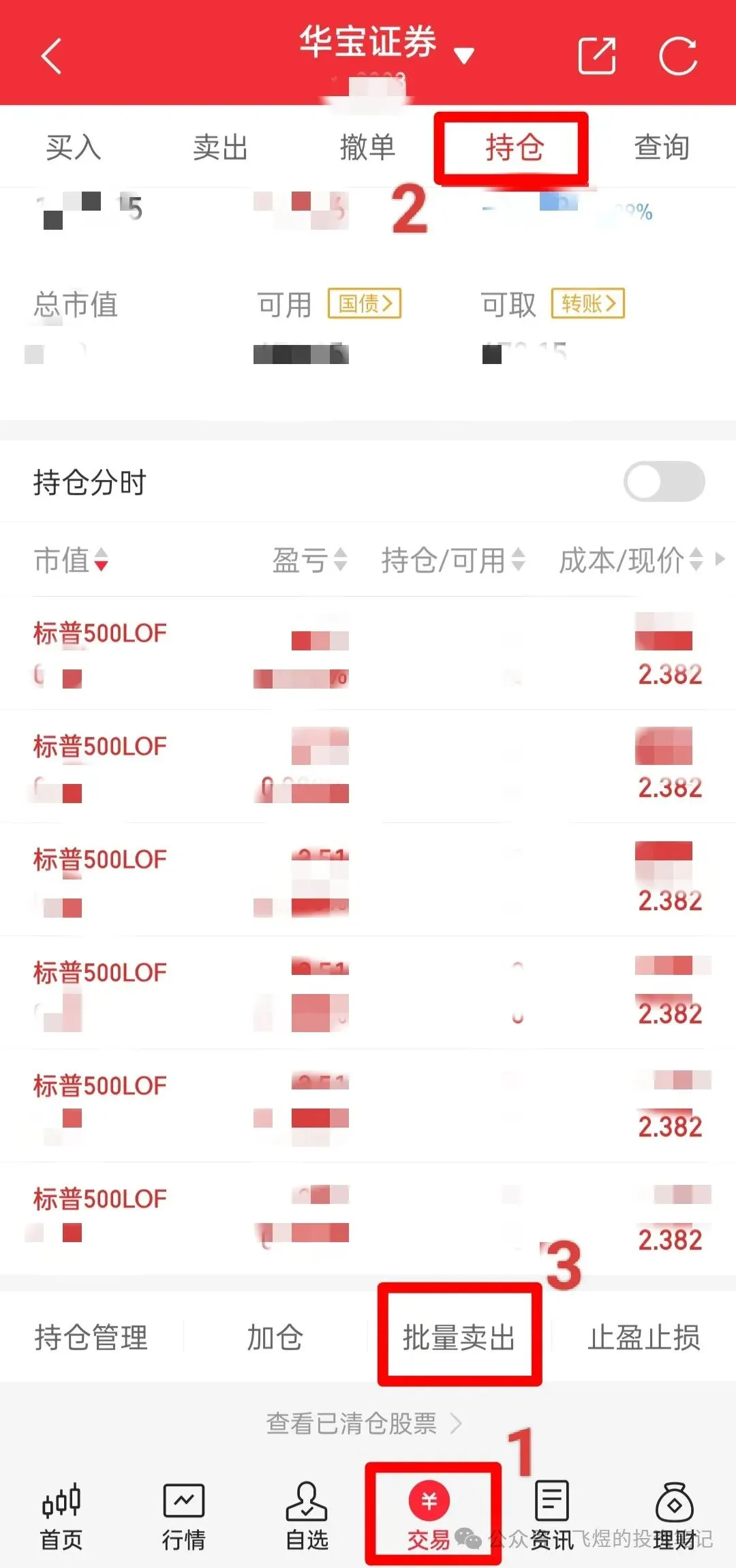 我们在做LOF溢价套利的时候,一般会用6个股东账号去申购,在卖出时我们的持仓也会有6笔投资,通常需要一笔一笔地去操作,这样会占用很多时间,而且基金的价格在短时间内波动会很大,特别是像笔者这样的上班族,又不能实时盯盘,一笔一笔卖出可能会错过好的价格。