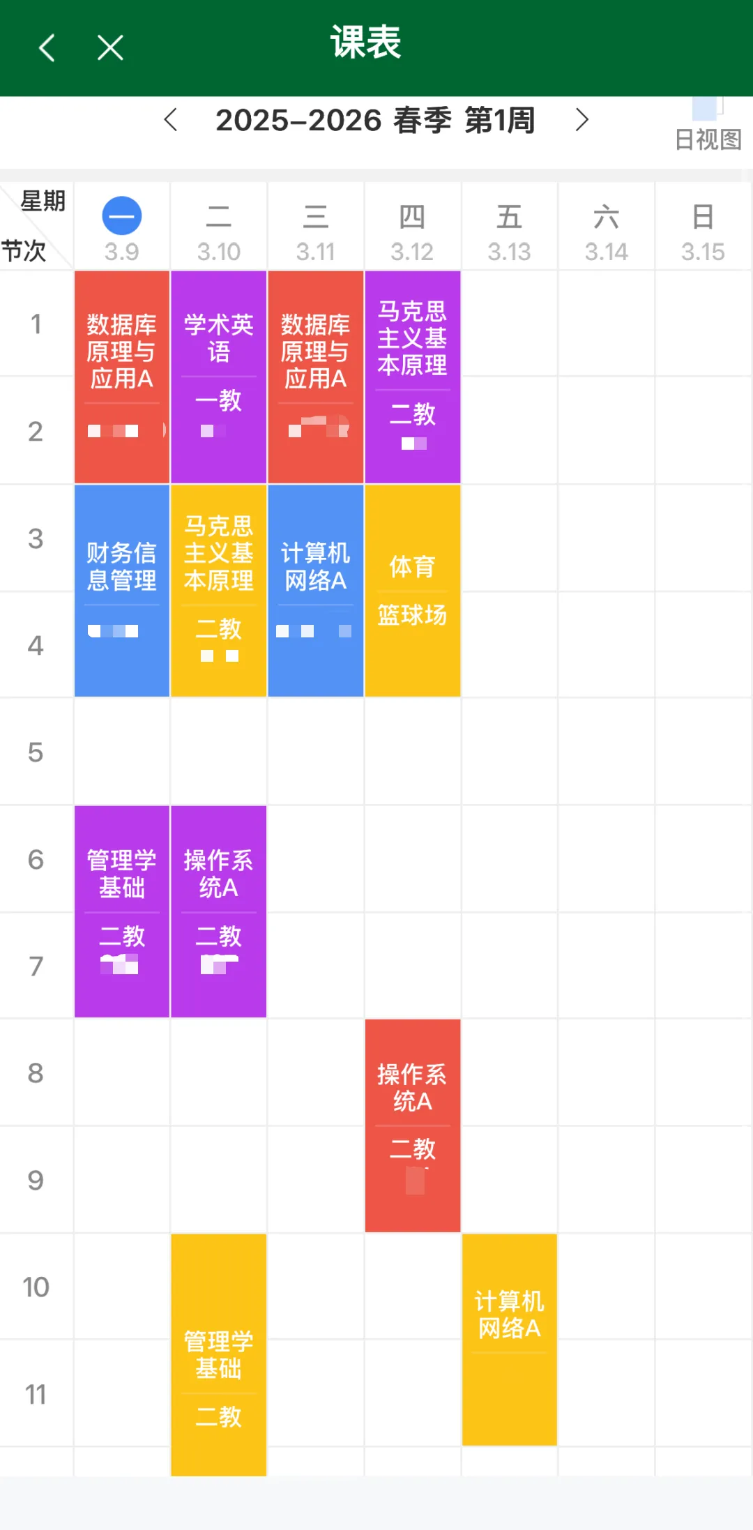 双视图自由切换:老师和学生都可以查看周视图和日视图,周视图能清晰呈现整周课程/授课排布,便于合理规划时间;日视图精准显示当日课程/授课详情,避免记错课时、教室。