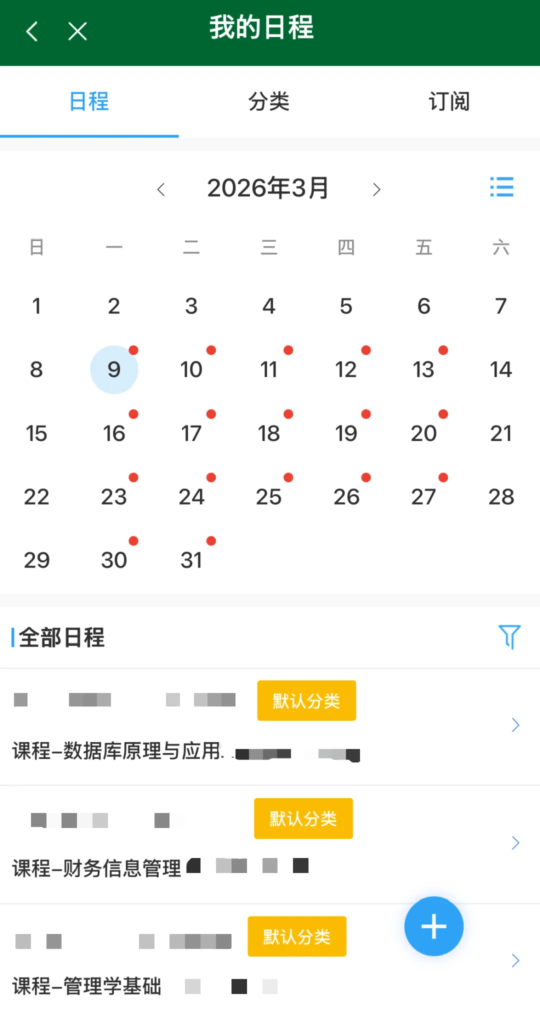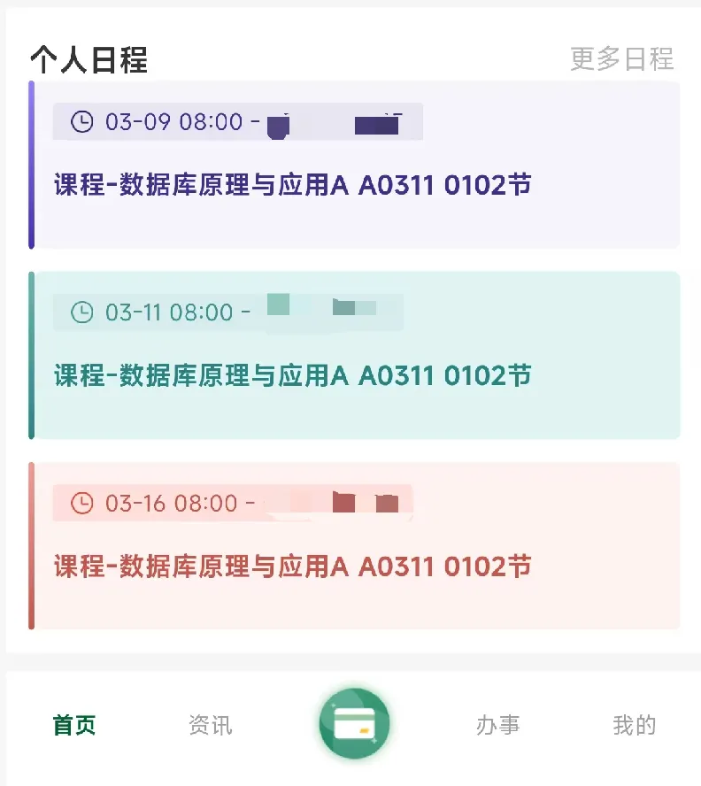 2、也可以从首页「我的日程」进入,既能查看课程日程,也能设置消息提醒。