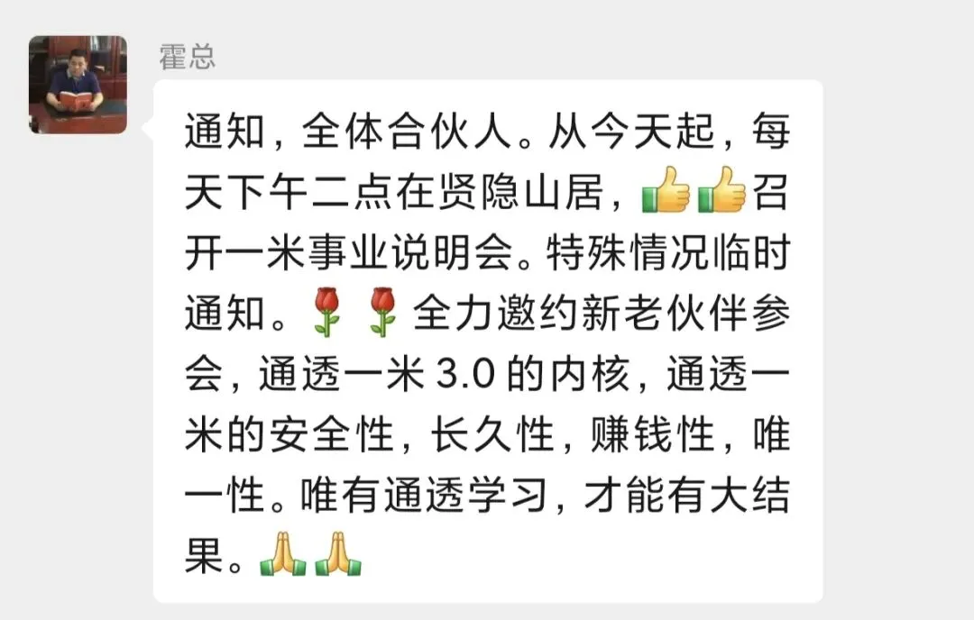 会议核心环节,狼王霍总亲自登台,以严谨专业的态度、清晰易懂的板书,为在场家人深度解读项目核心价值。严格遵循公司标准,逐字逐句拆解商业模式、运营逻辑与市场前景,讲解深入浅出、条理分明,让每一位参会者都听得明白、学得透彻。霍总生动诠释了一米臻选3.0系统的核心优势,重点阐述系统的安全性、稳定性与长远发展潜力,用扎实的内容与真诚的分享,赢得现场阵阵掌声,也让大家对项目未来充满信心。