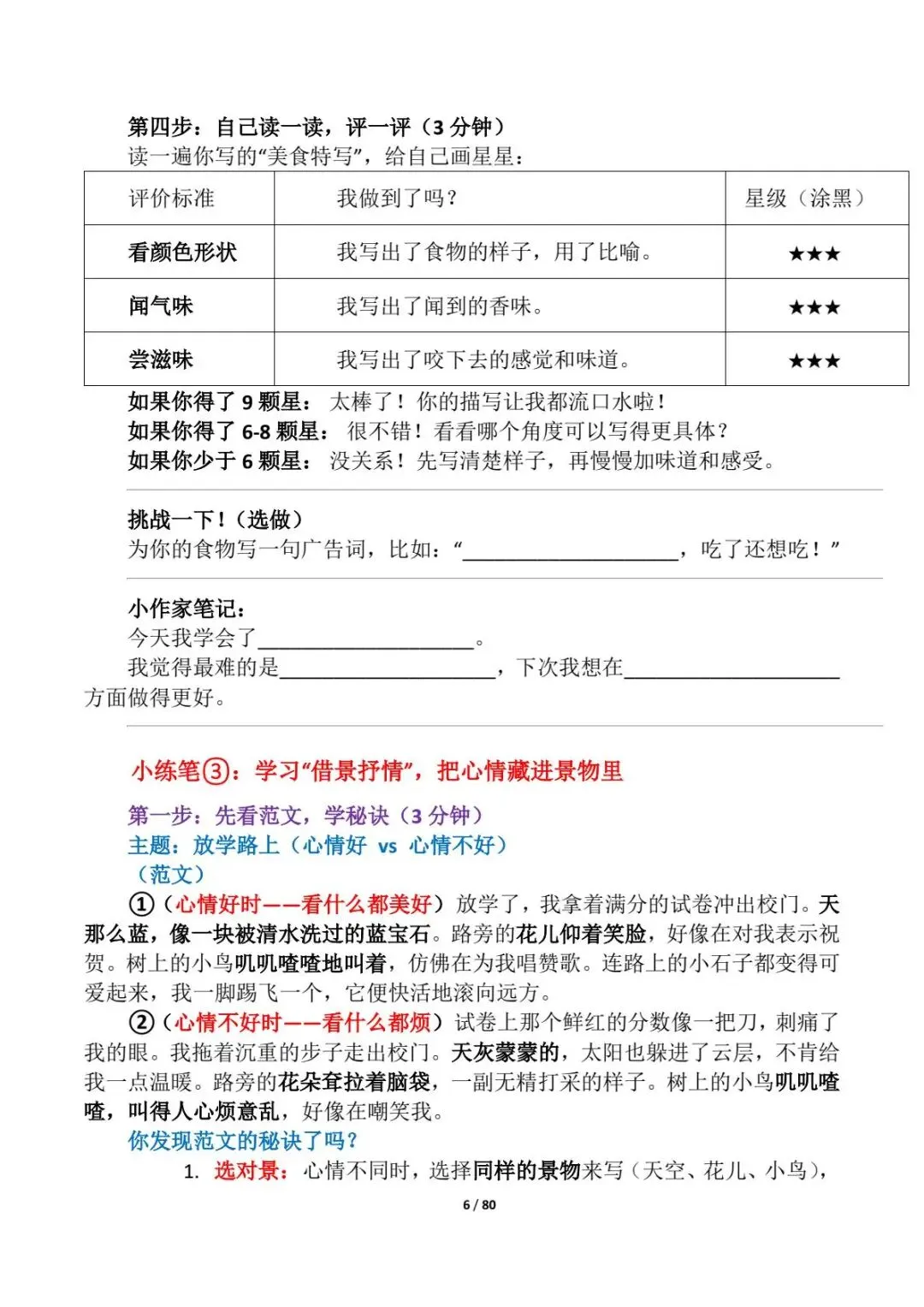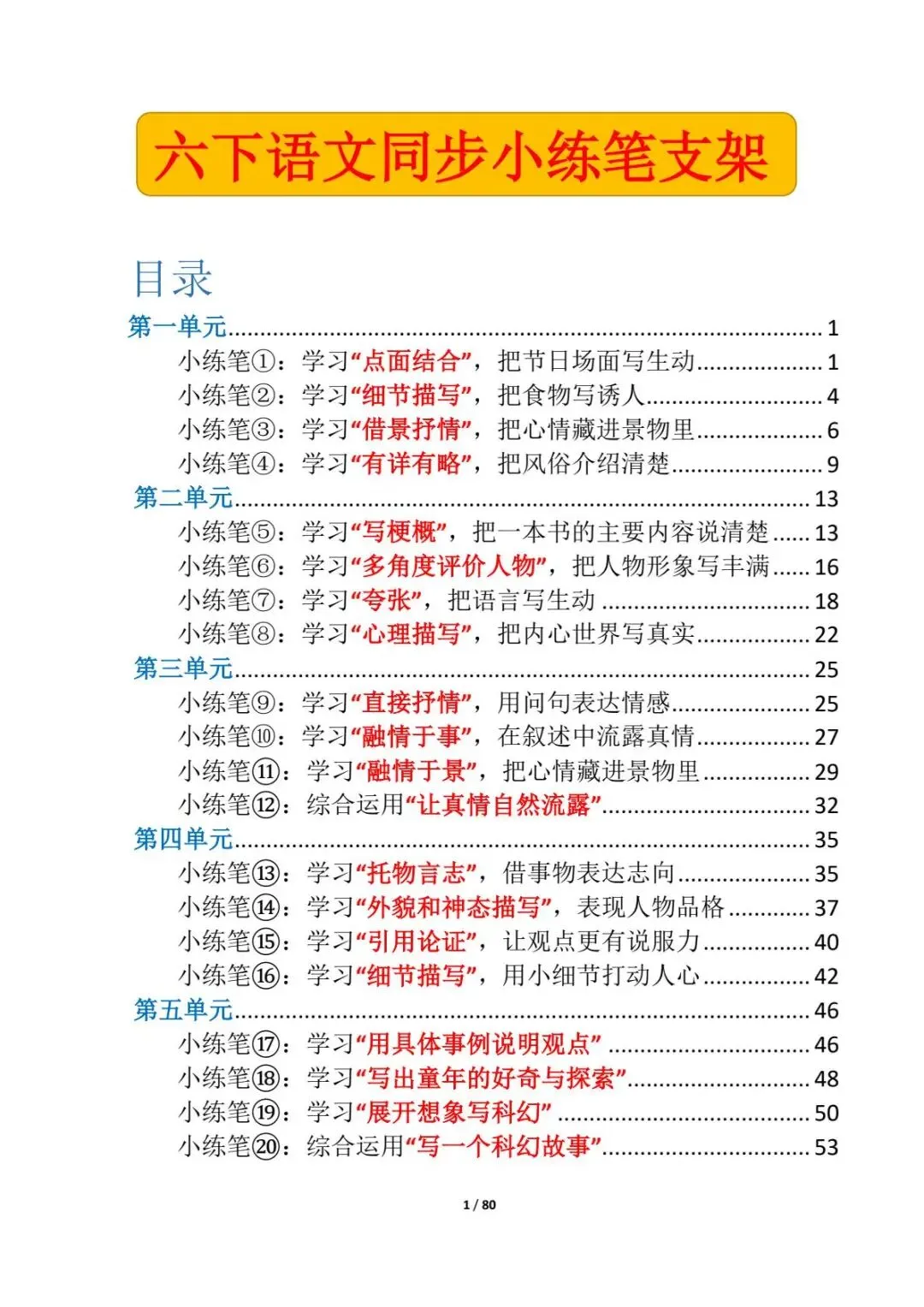 六年级下册语文同步小练笔支架 80页 可下载打印