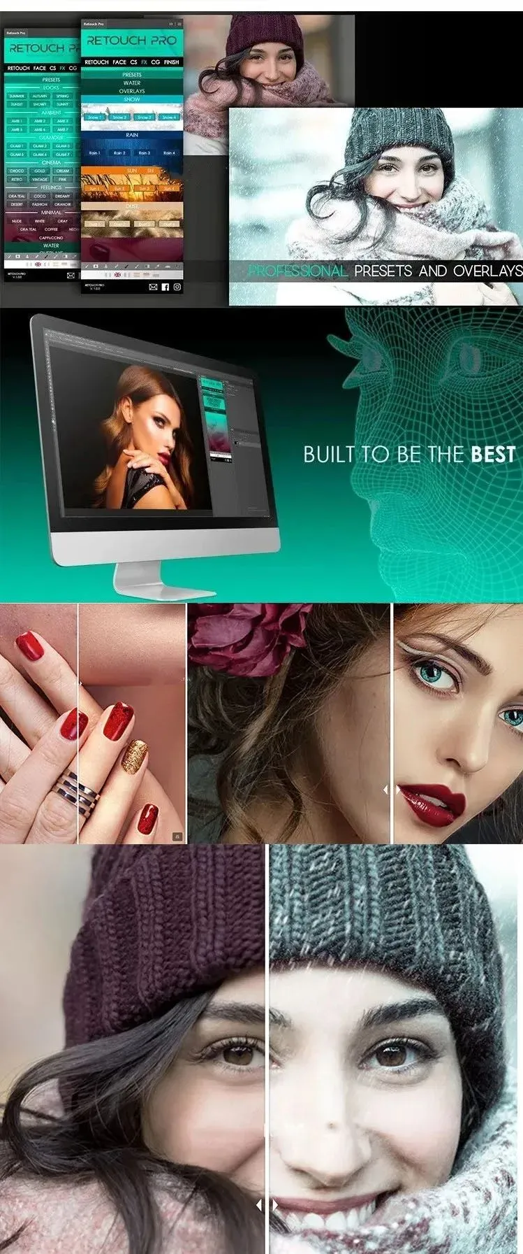 Retouch Pro是一款优秀的图像修饰插件,由于其强大的人工智能系统,您可以轻松就获得专业的效果,并且比以往的手动更快,效果更好,操作更简单,针对人物的皮肤、眼睛、头发、嘴巴、衣物等进行专业的修改和优化,提供超多专业的预设供您选择。