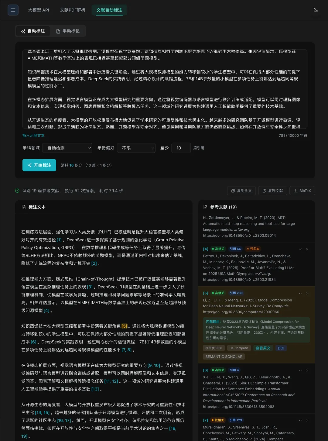 凌晨四点半,我失眠刷小红书,看到有人做了一个”自动引用标注”工具——你粘贴一段论文文字,它自动帮你在合适的位置加上引用。