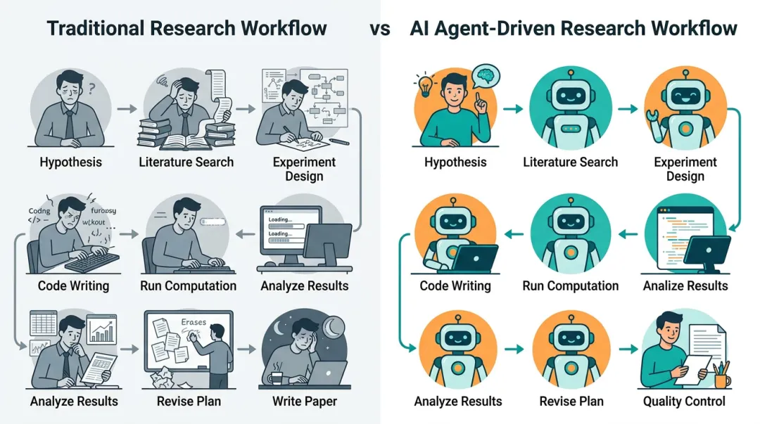 过去,一个优秀的科学家需要同时具备两种能力:提出好问题,以及亲手执行研究。很多科学家 80% 的精力花在后者上——搜文献、写代码、跑实验、改格式。
