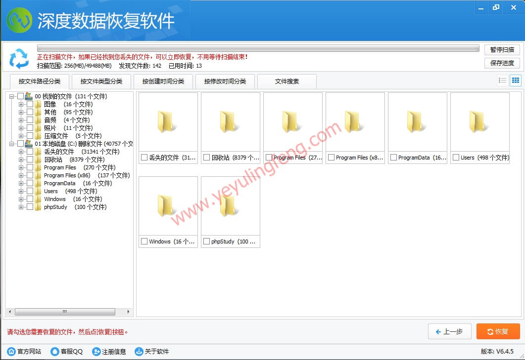边扫描边显示,随时可以恢复找到的数据,不用等扫描完成。