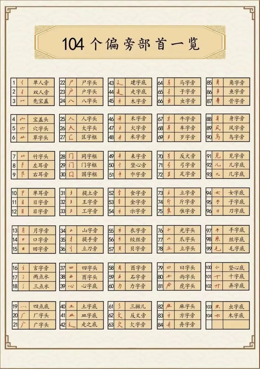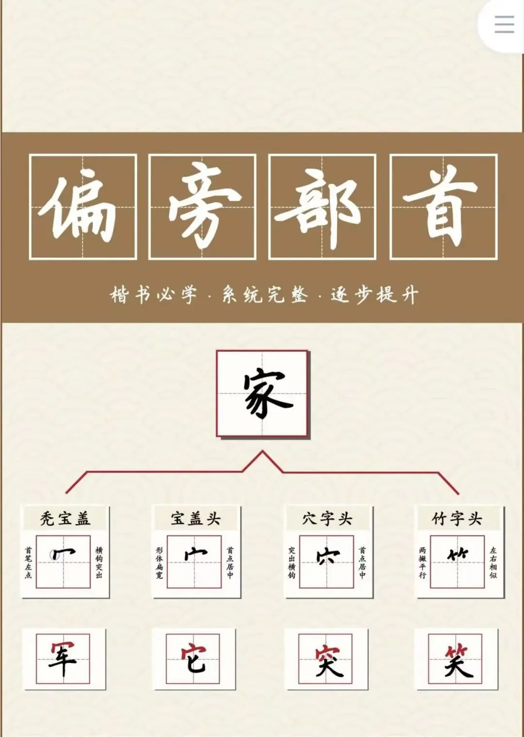 硬笔字帖:偏旁部首.高清PDF免费分享(可直接下载打印)