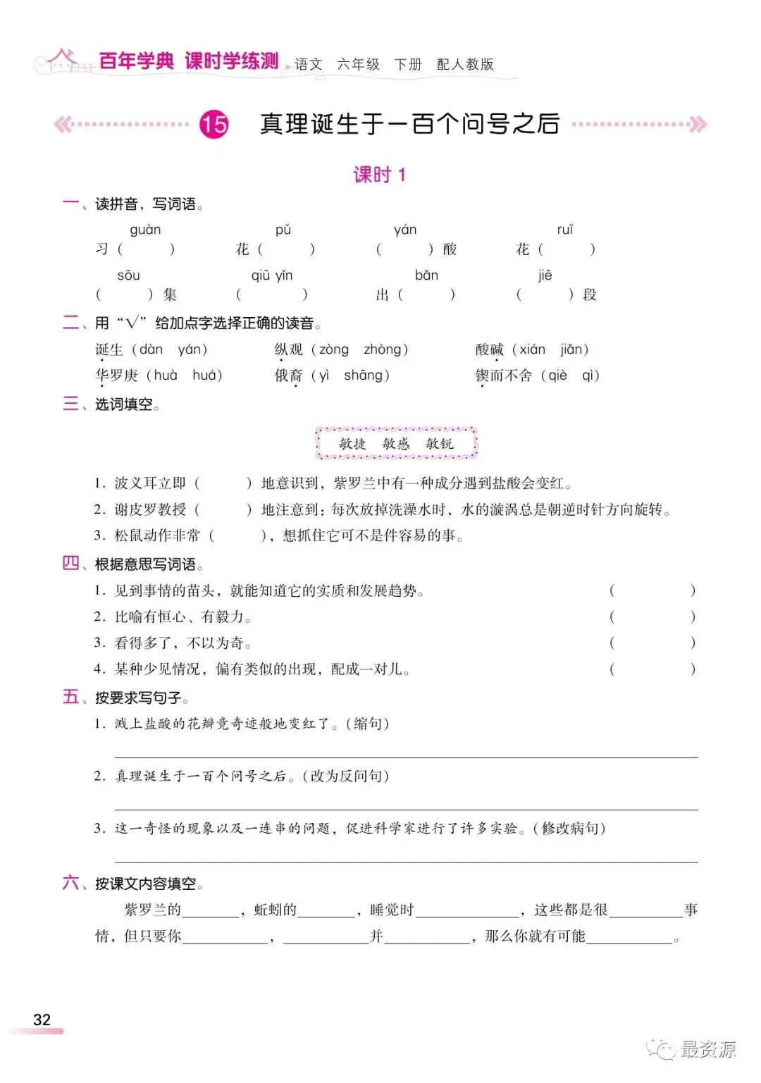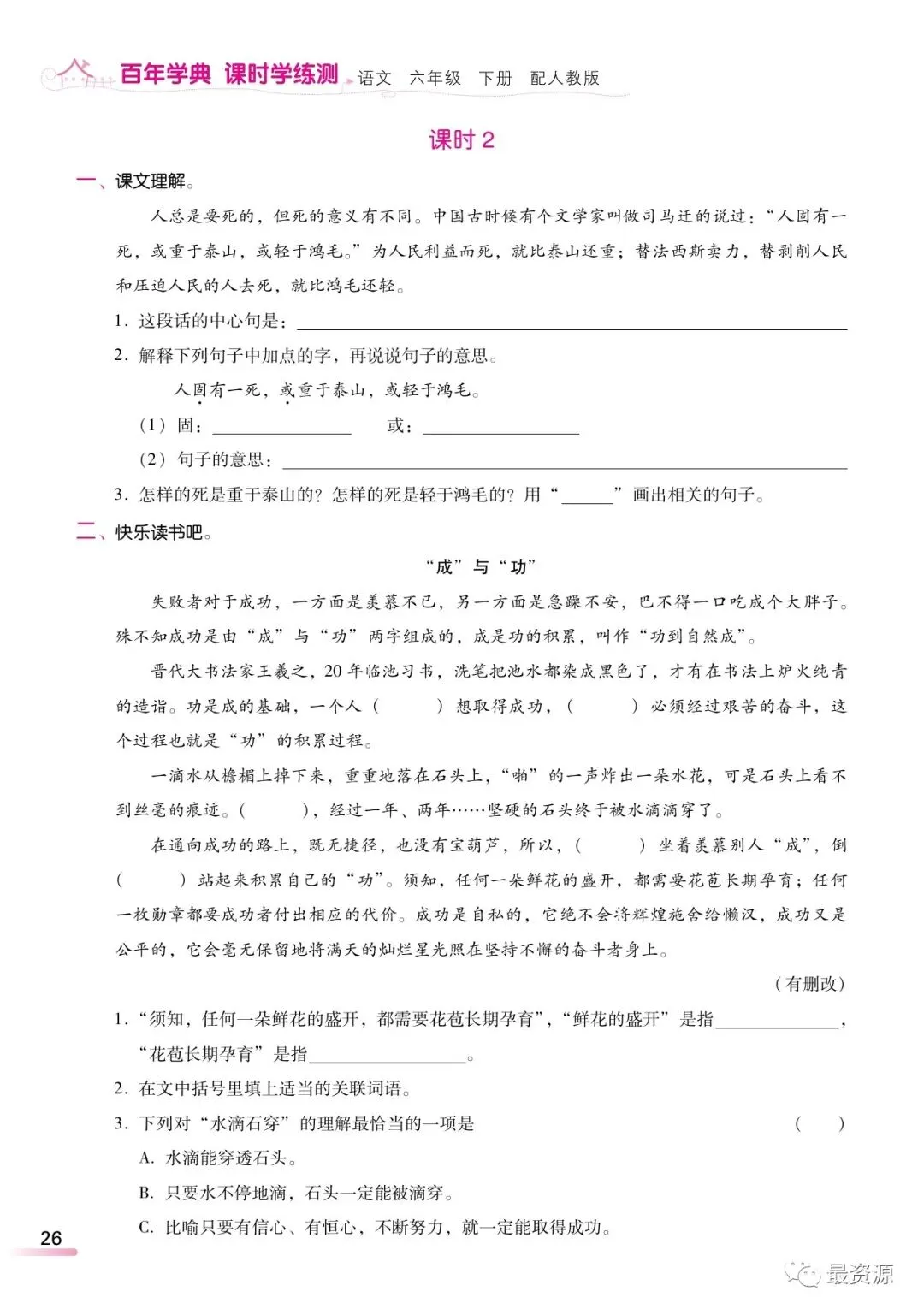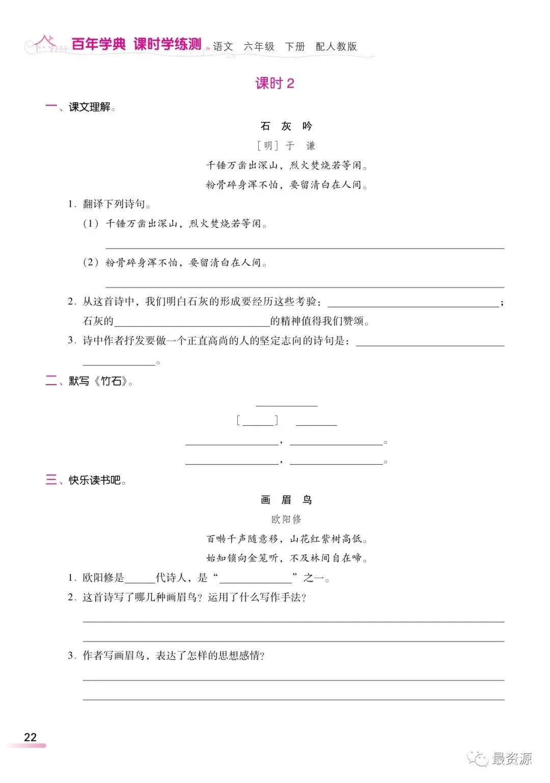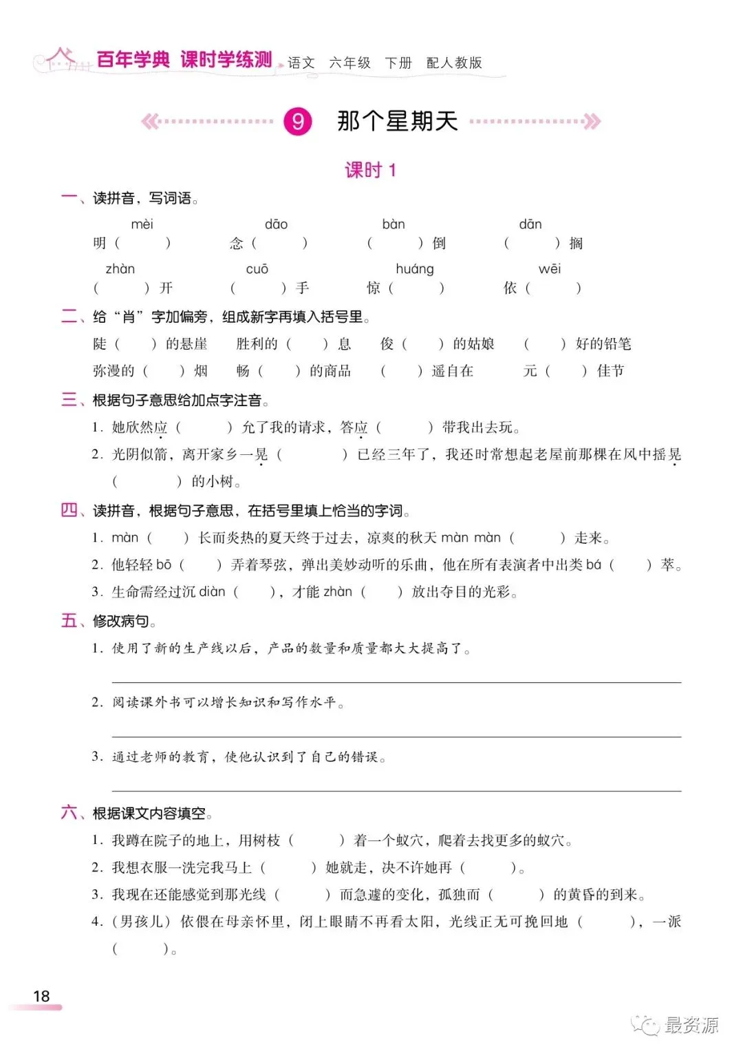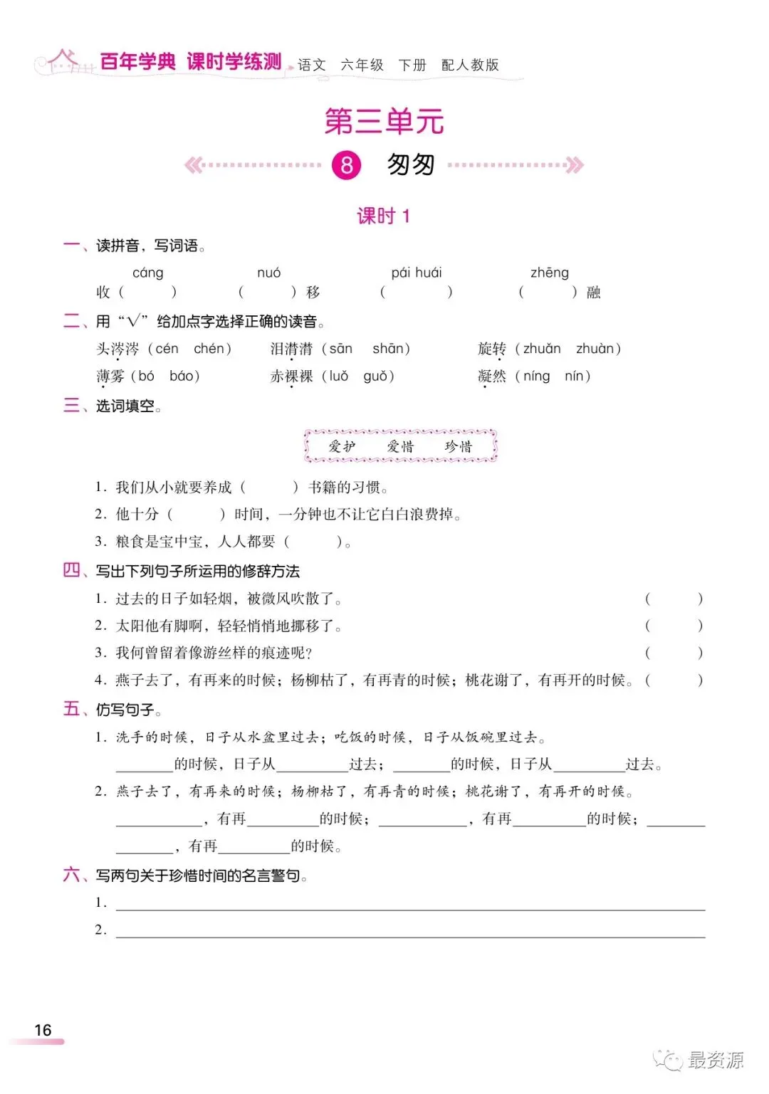 本文最后更新于2026-03-09,某些文章具有时效性,若有错误或已失效,请在下方留言或联系老夜。 统编版语文六年级下册精编《课时练》丨可打印 今天,梅老师给大家分享一份统编版语文六年级下册精编版课时学练测,1-8单元,全册都有了。有需要的家长,可以领取电子版打印给孩子做一做,巩固知识点!(建议老师转发到班级群)领取电子版请拉到文末领取电子版请拉到文末 素材来源于网络,公益分享,如有侵权请联系我们删除。 设梅语文为★星标★公众号,每天阅读好文章,领取优质学习资源。 完整电子版领取方式 ▲长按识别二维码 即可领取电子版下载打印 更多六年级下册语文资料!