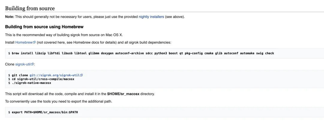 参照帮助页面https://sigrok.org/wiki/Mac_OS_X以下段落: