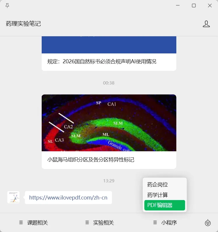 点击底部菜单栏「小程序」→「PDF 编辑器」,即可直接跳转使用。
