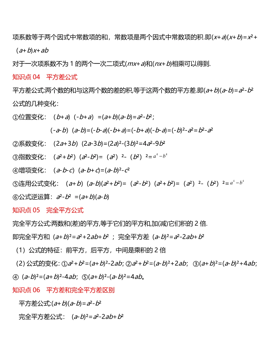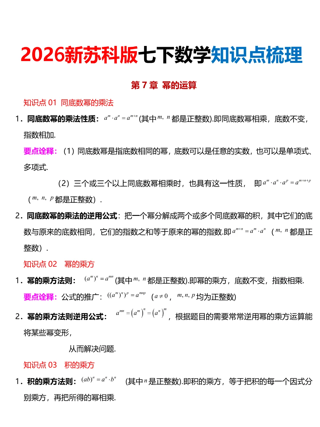 七年级下册数学【苏科版】知识点梳理丨完整电子版可打印