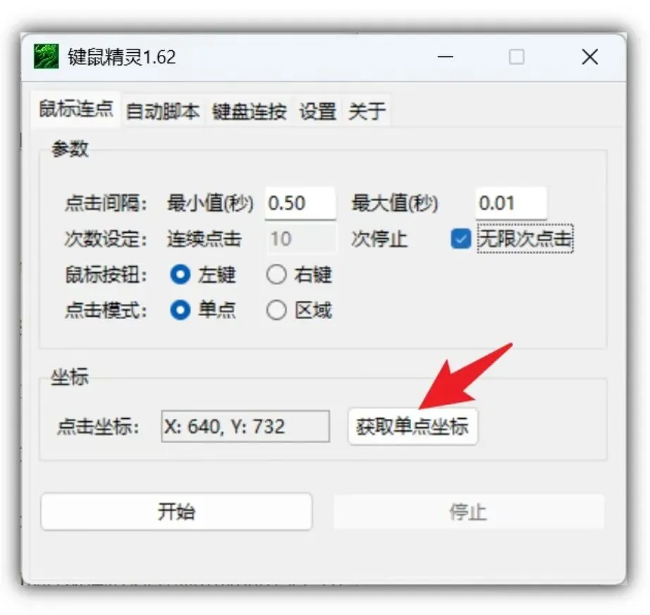 适合需要反复点击的场景(如抢票、游戏挂机)。先获取屏幕坐标,设置点击间隔(可设随机范围避免被检测),再设定点击次数或无限次,点击“开始”即可运行,按Esc键随时停止。