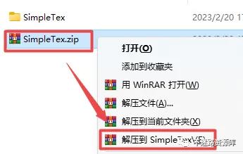 1.选中下载的压缩包,然后鼠标右键选择解压到“SimpleTex”(没有解压选项点这里)