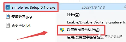 2.打开刚刚解压的文件夹,鼠标右键点击“SimpleTex Setup 0.1.6”选择“以管理员身份运行”