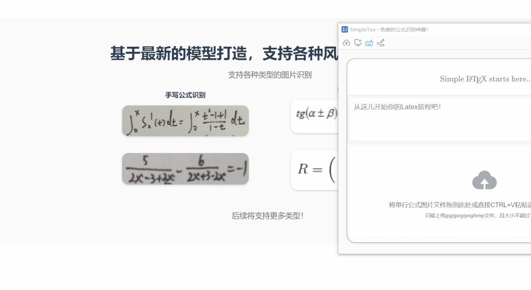 SimpleTex工具的开发者,是一名在校本科大学生。出于市面上没有好用且无限制免费的Latex公式识别软件,故决定自己开发一个。软件虽说处于开发阶段,但是基本的功能还是很扎实的。只需轻松截取公式图片或上传本地图像,即可快速获得数学公式的LaTex表达,支持快速插入图片/MathML/LaTeX等格式至各大办公与排版软件,极大的提高了工作效率。