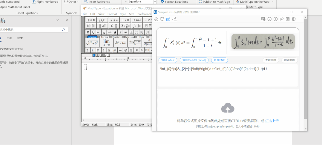 识别后的公式提供准确的LaTeX格式,可以复制粘贴进其他公式编辑器再进行编辑,例如国产公式编辑器Axmath以及MathType。