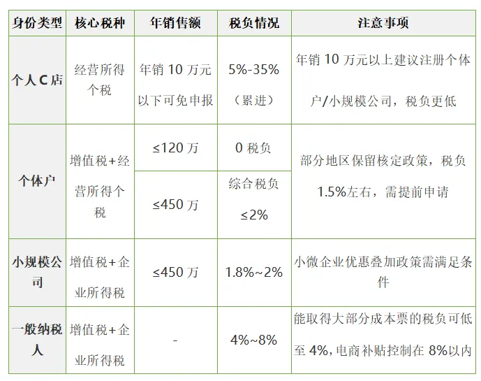 这次提醒是个信号,个人店监管只会越来越严,想长期做的,不如趁现在把主体理顺,既能降税负,又能避风险。 不同体量的卖家可以参考这个选择方案: