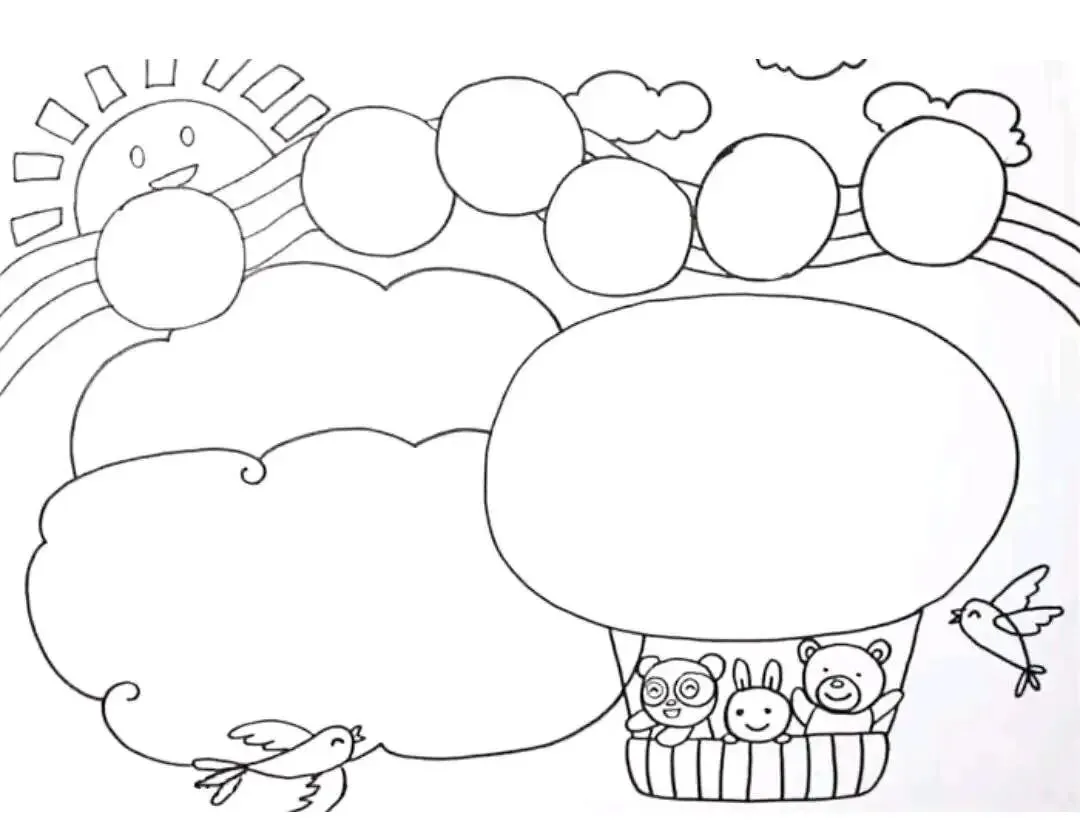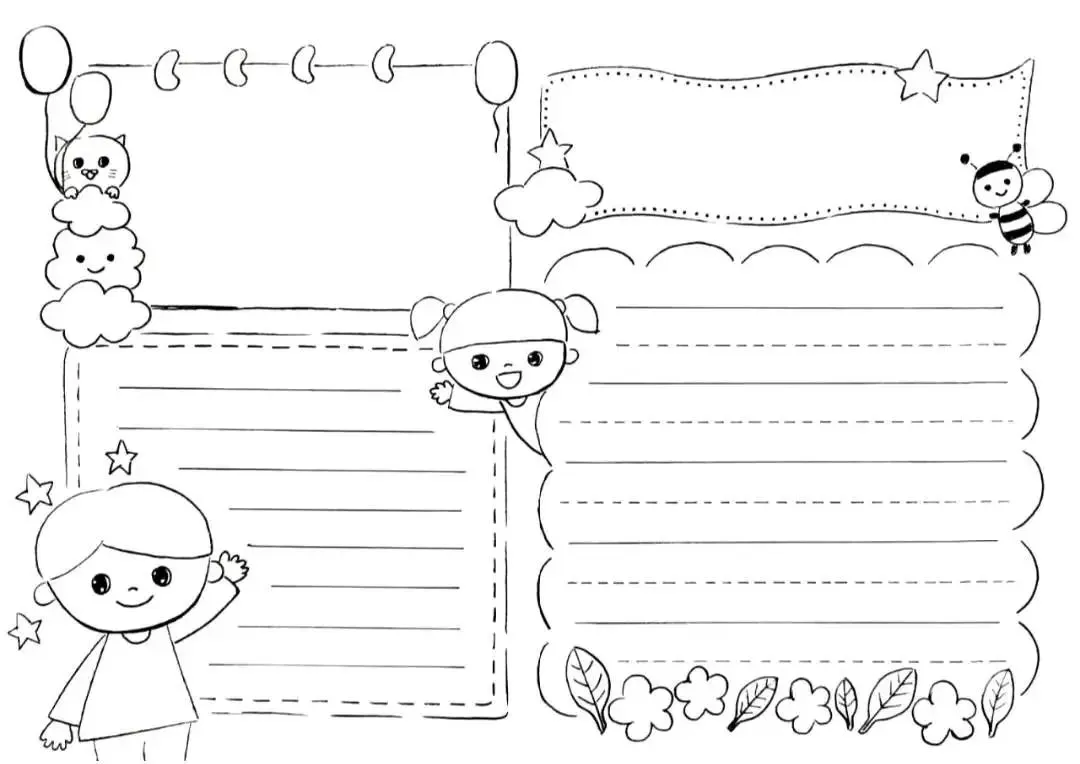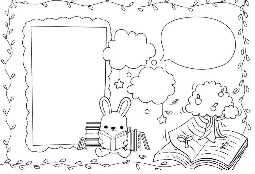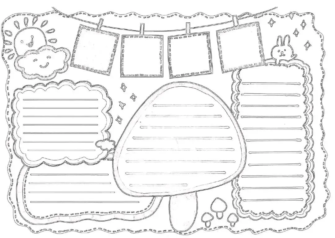 将设计完成的手抄报转化为黑白线稿图像,确保没有水印。 -