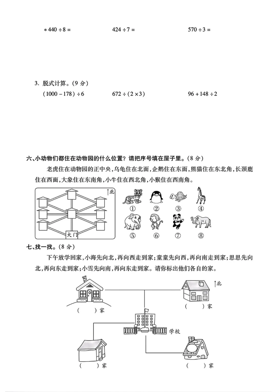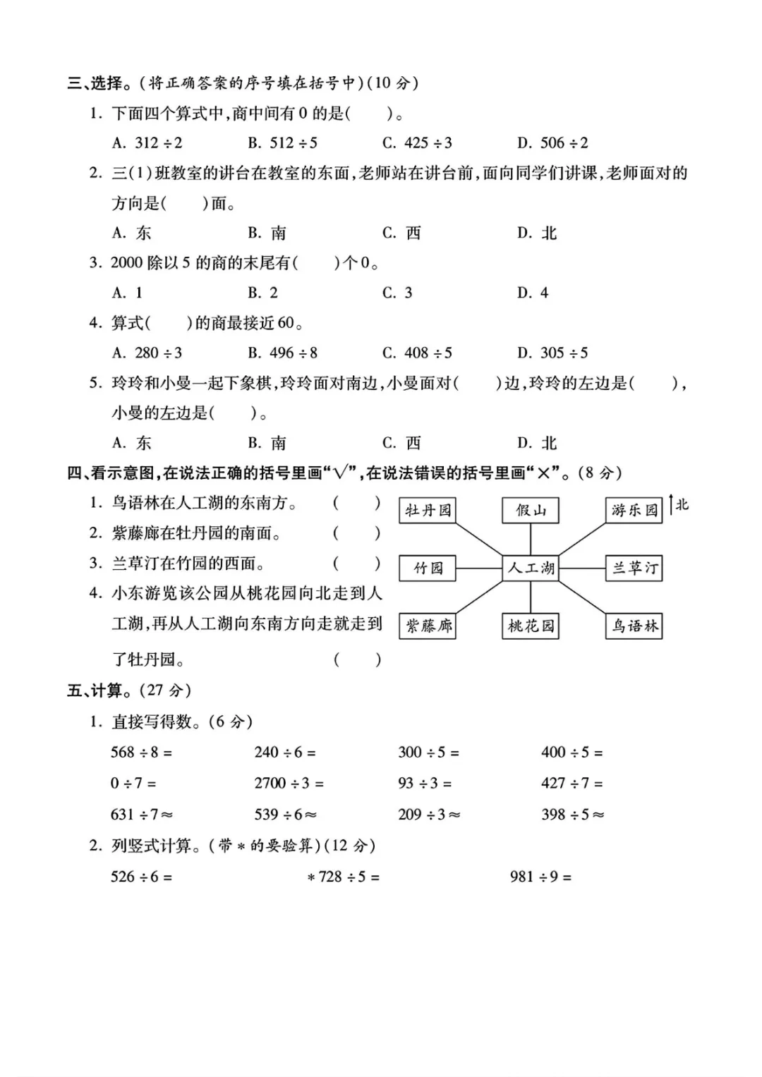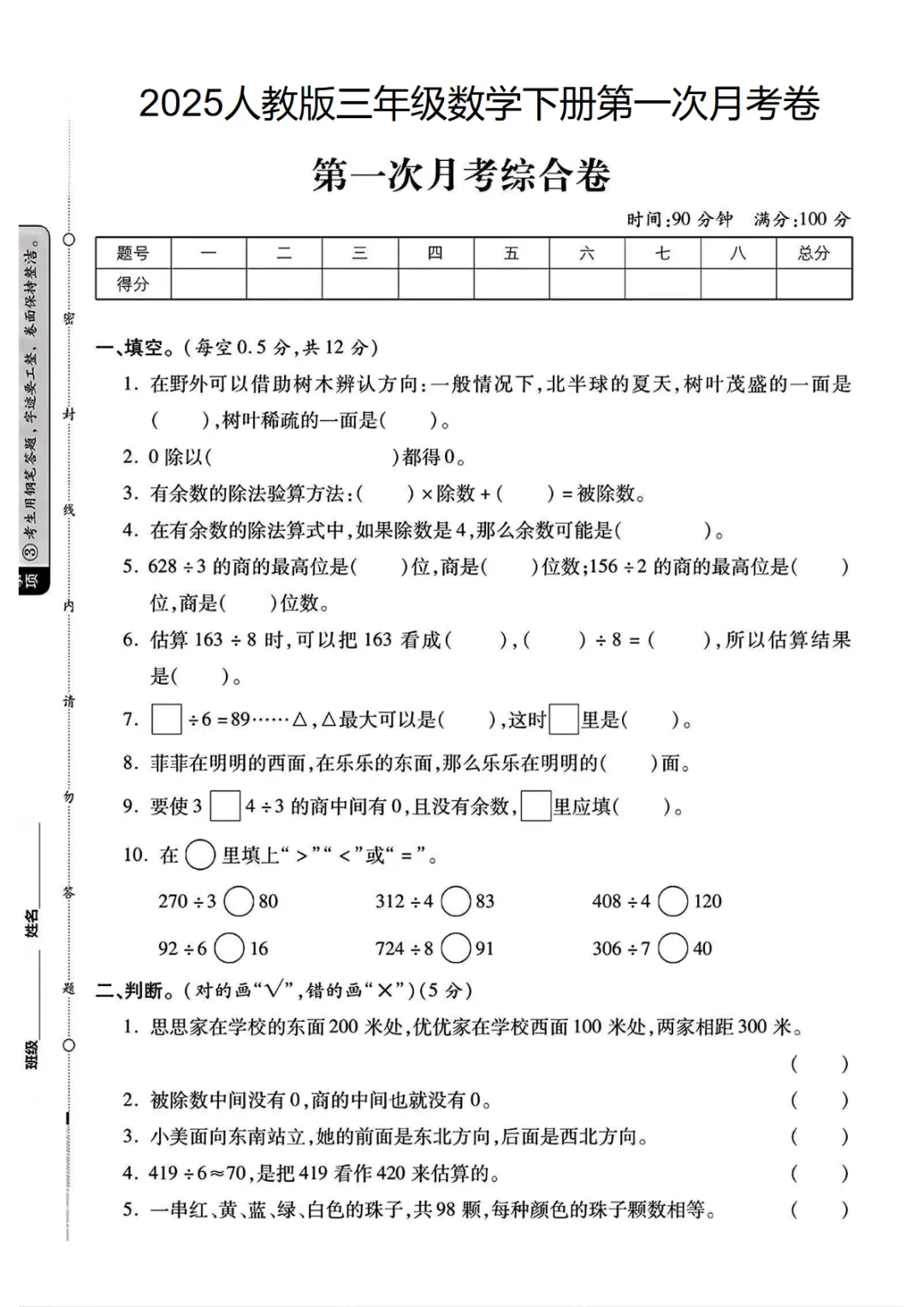 【高清电子版】三年级(下)数学 第一次月考综合卷《人教版》
