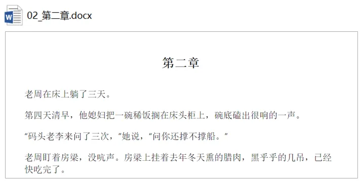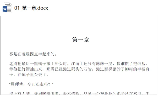 📁 各章节文稿/ → 📄 完整书稿.docx├── 01-第一章.docx ├── 第一章内容...├── 02-第二章.docx ├── (分页符)├── 03-第三章.docx ├── 第二章内容...└── ...(直到第N章).docx └── ... (所有内容按序合并)