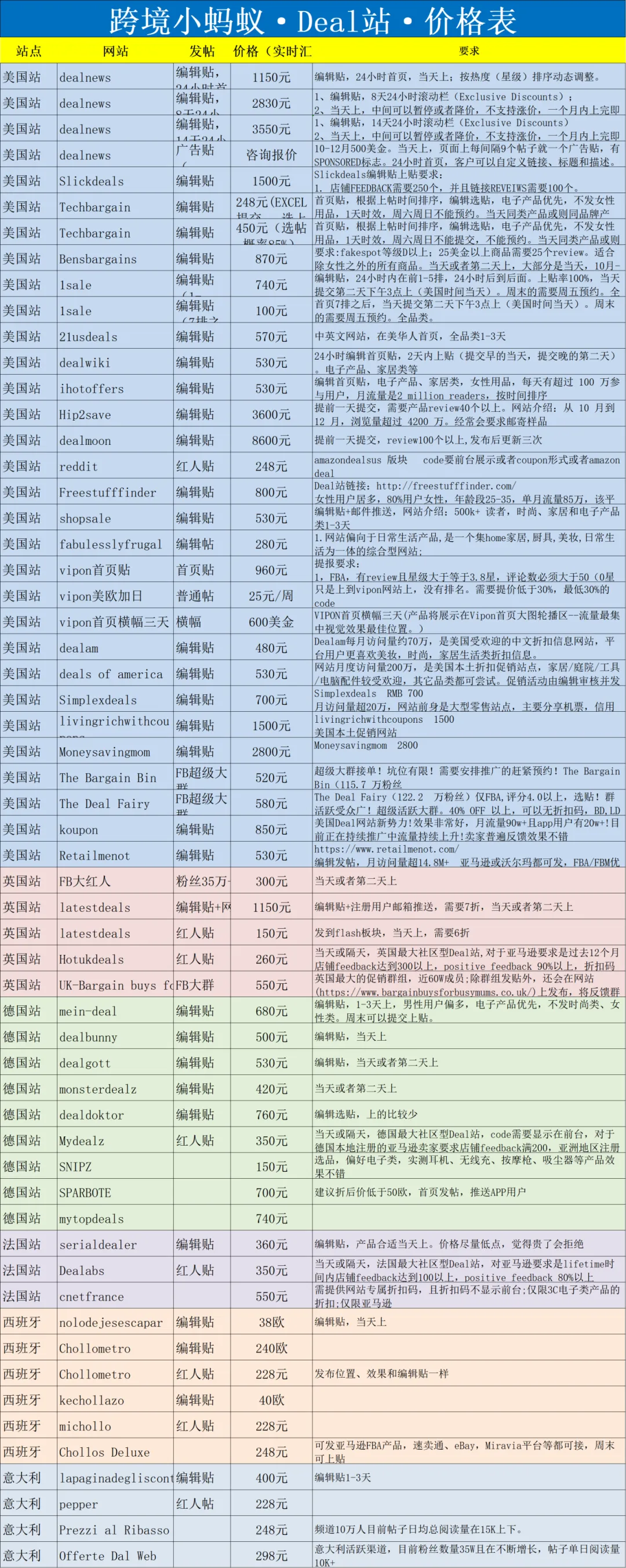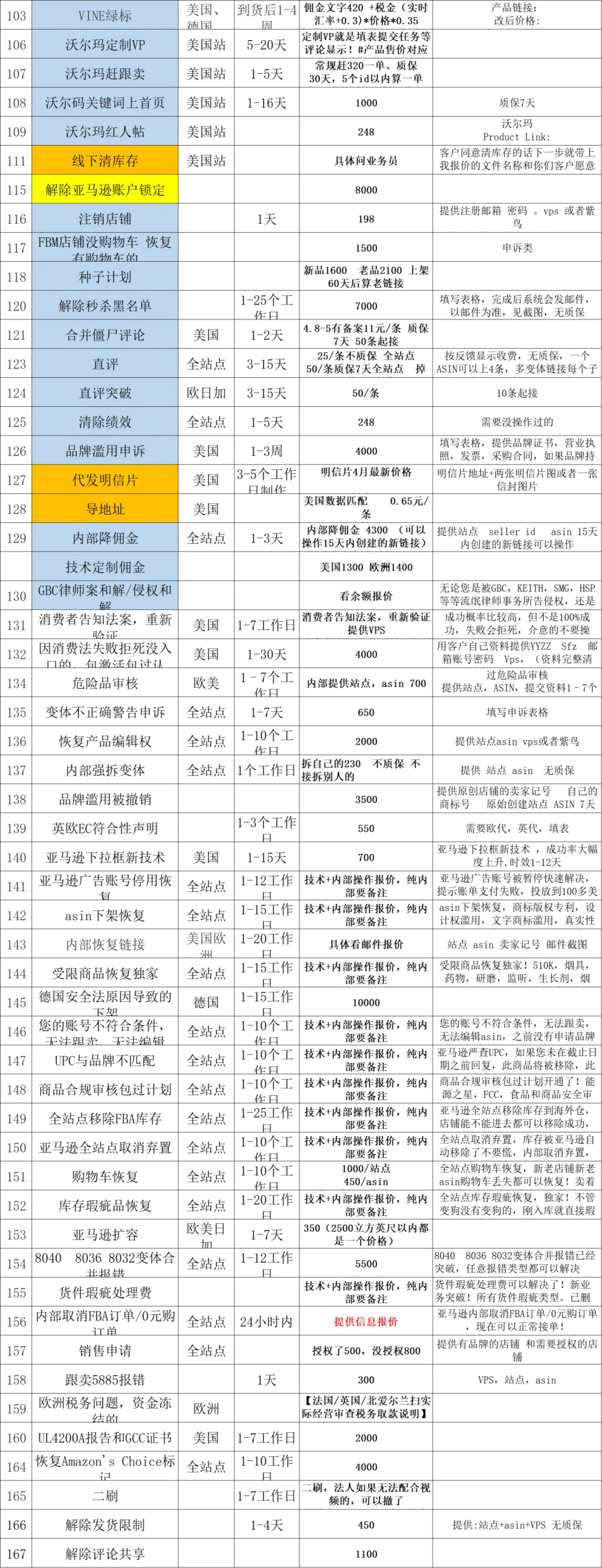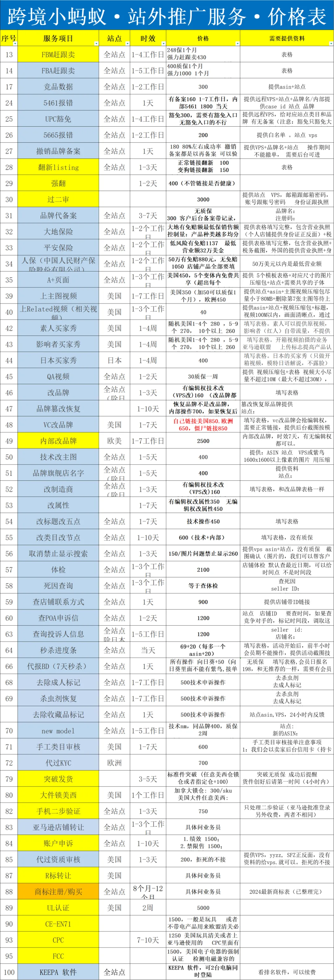亚马逊站外推广服务价格表(上下滑动)