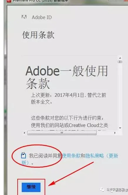 6.勾选使用条款,点击继续
