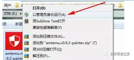 11. 接下来鼠标右击amtemu.v0.9.2-painter,选择以管理员的身份运行。