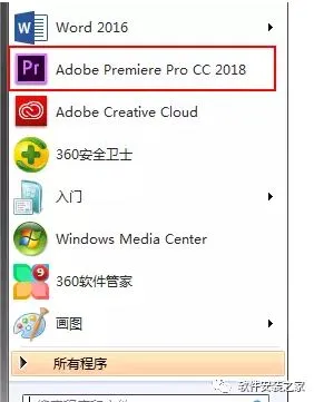 15.我们打开软件来验证一下,在开始菜单中点击Adobe Premiere Pro CC2018软件图标。