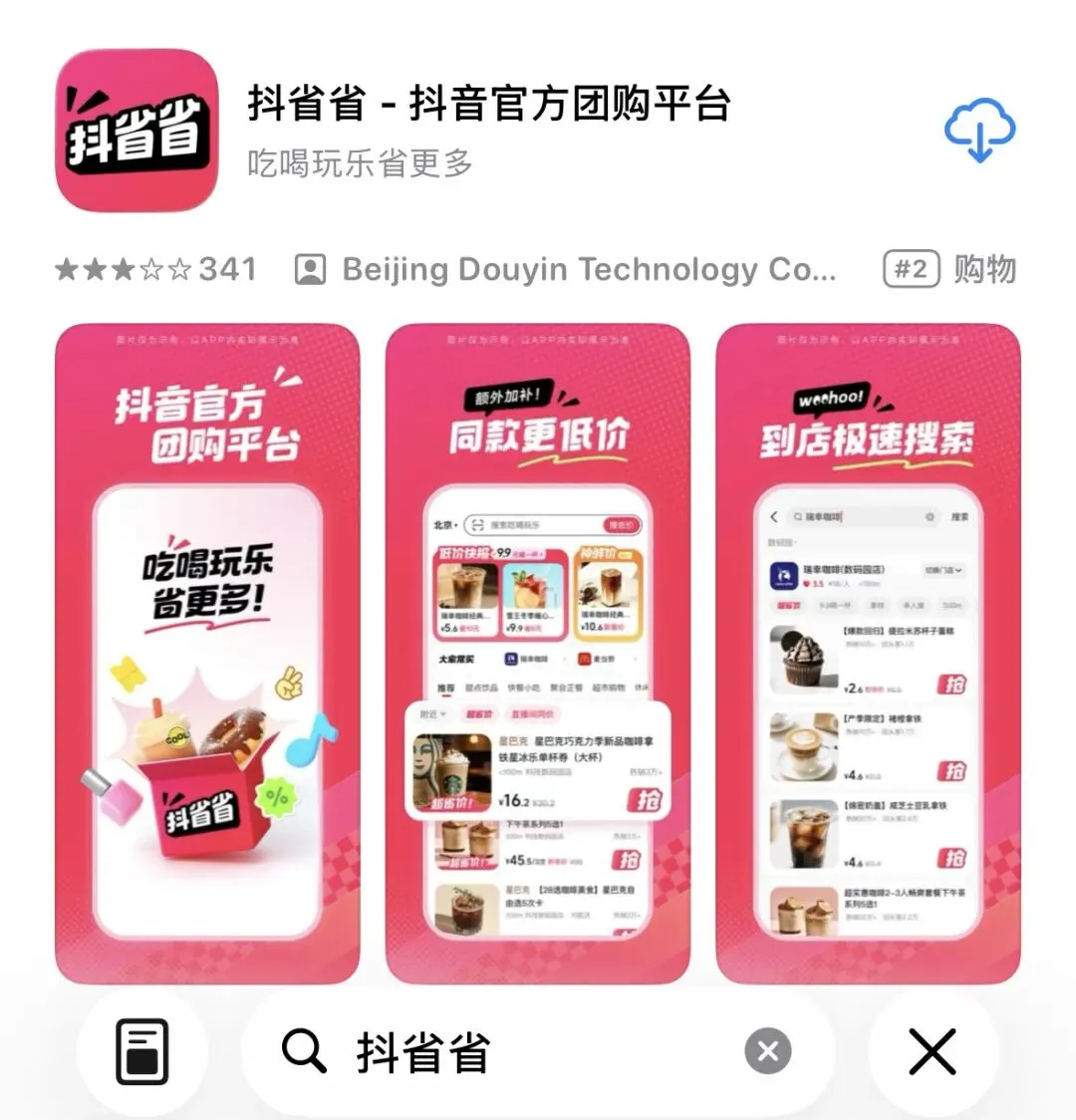 这款APP就是抖省省,它以“高效省钱、极简交易”为核心,作为抖音补齐本地生活“人找货”货架电商短板的关键布局,抖省省剥离了主App的短视频流与社交链路,专注打造纯粹的交易工具,形成“抖音主站内容种草+抖省省交易转化”的协同模式。未来,平台还计划融入AI技术,进一步提升推荐精准度与消费体验,助力用户更轻松地探索线下吃喝玩乐场景,实现“省钱不省生活品质”的目标。