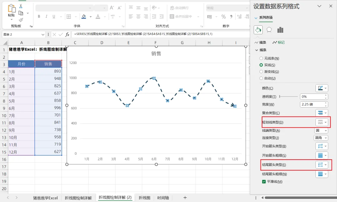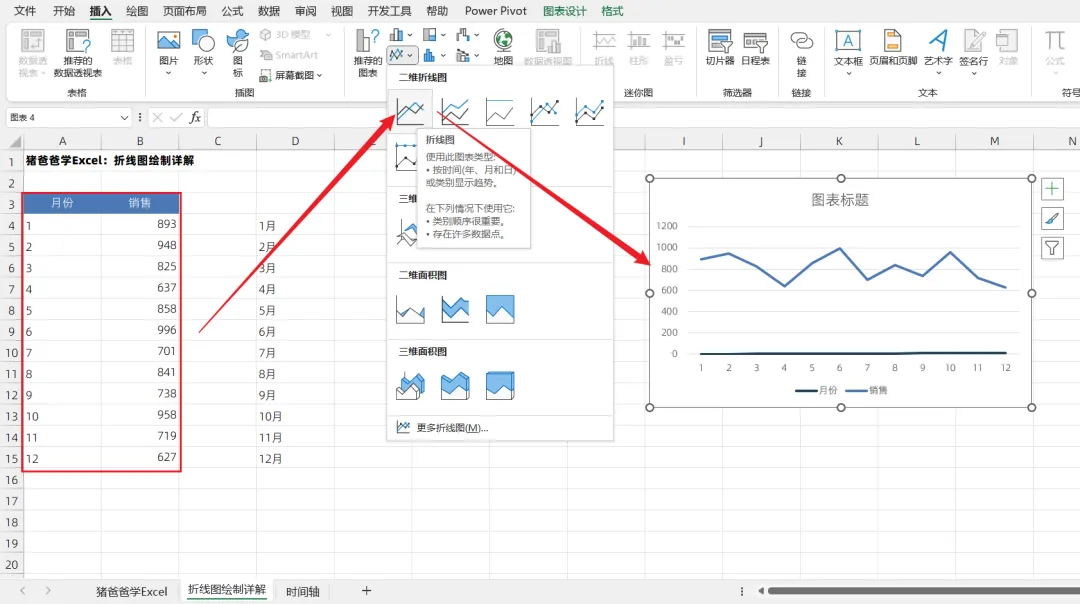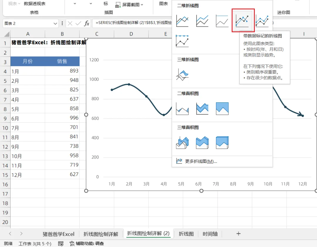 猪爸爸学Excel标准/基础图表-折线图绘制中的坑与细节点