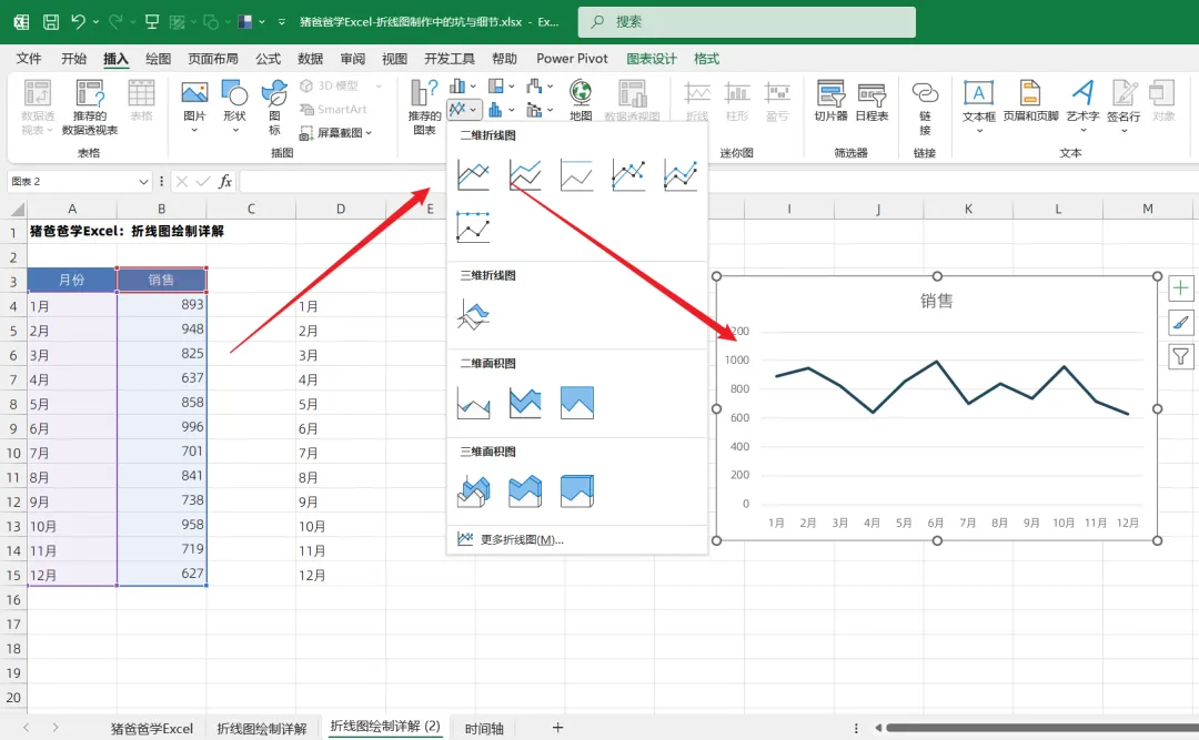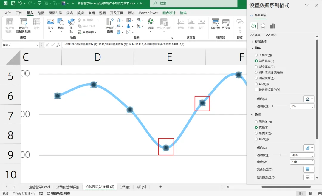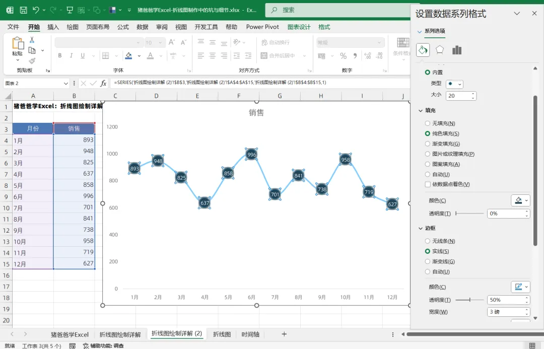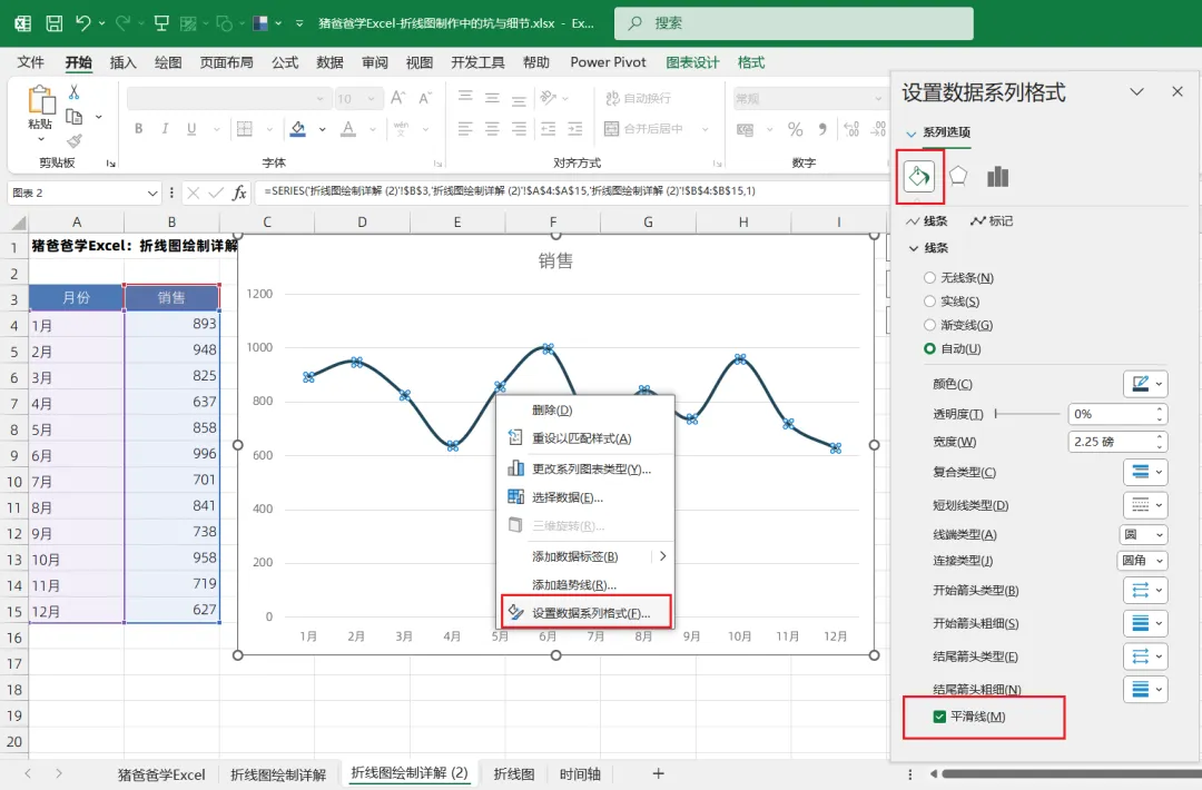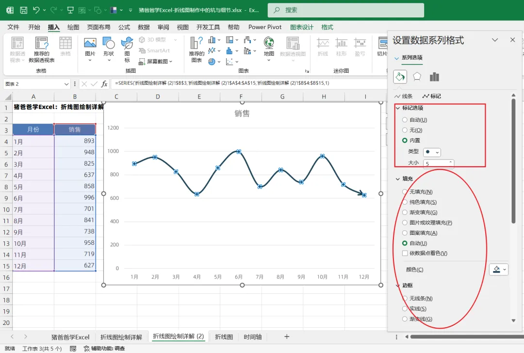 这一节是猪爸爸学excel标准/基础图表之折线图绘制中的坑与细节点