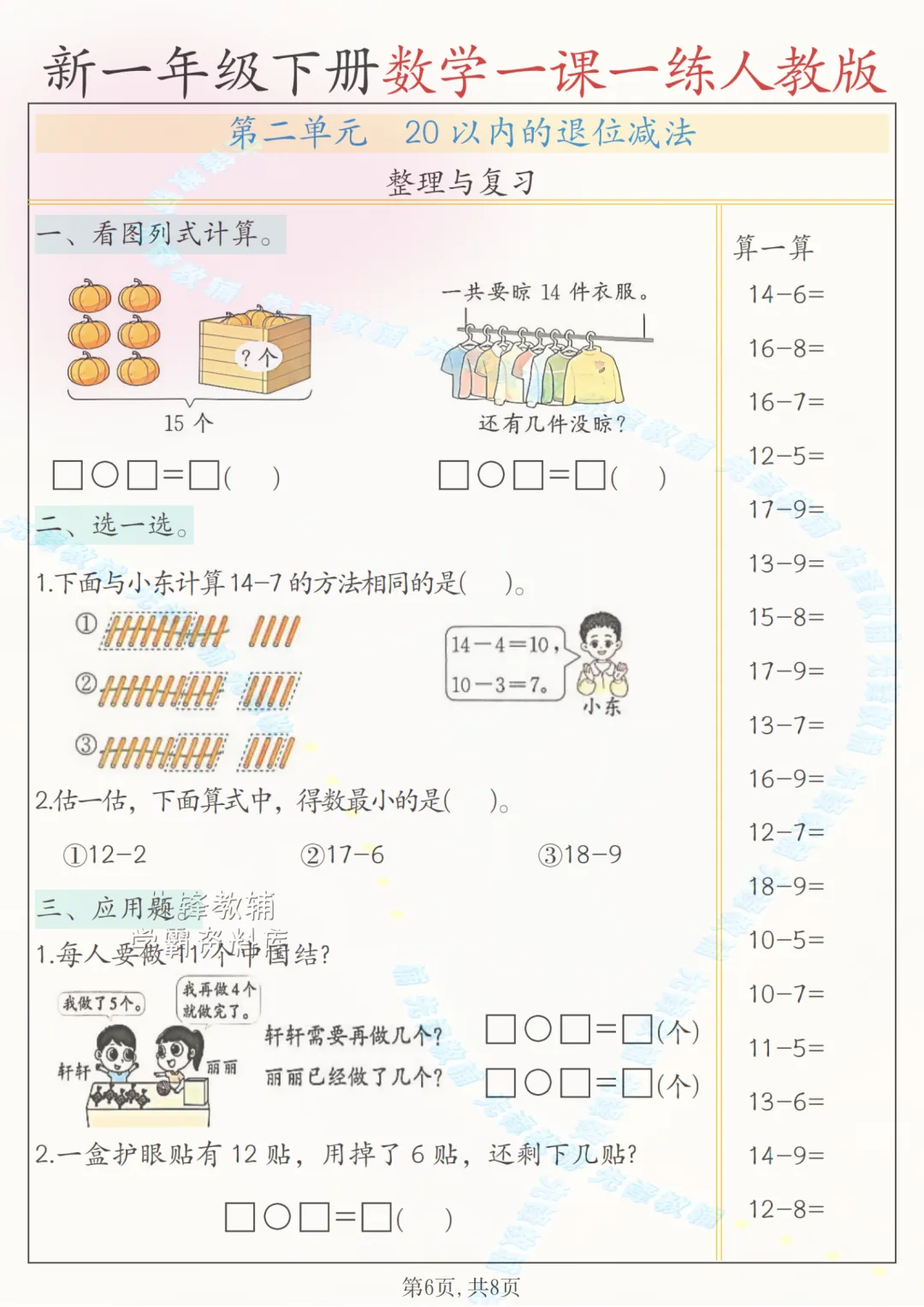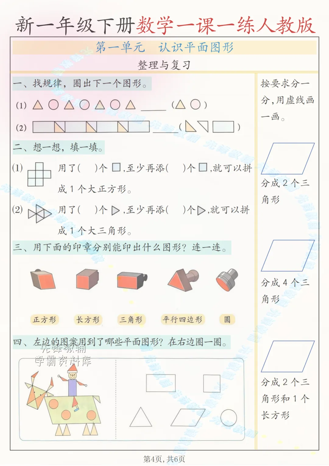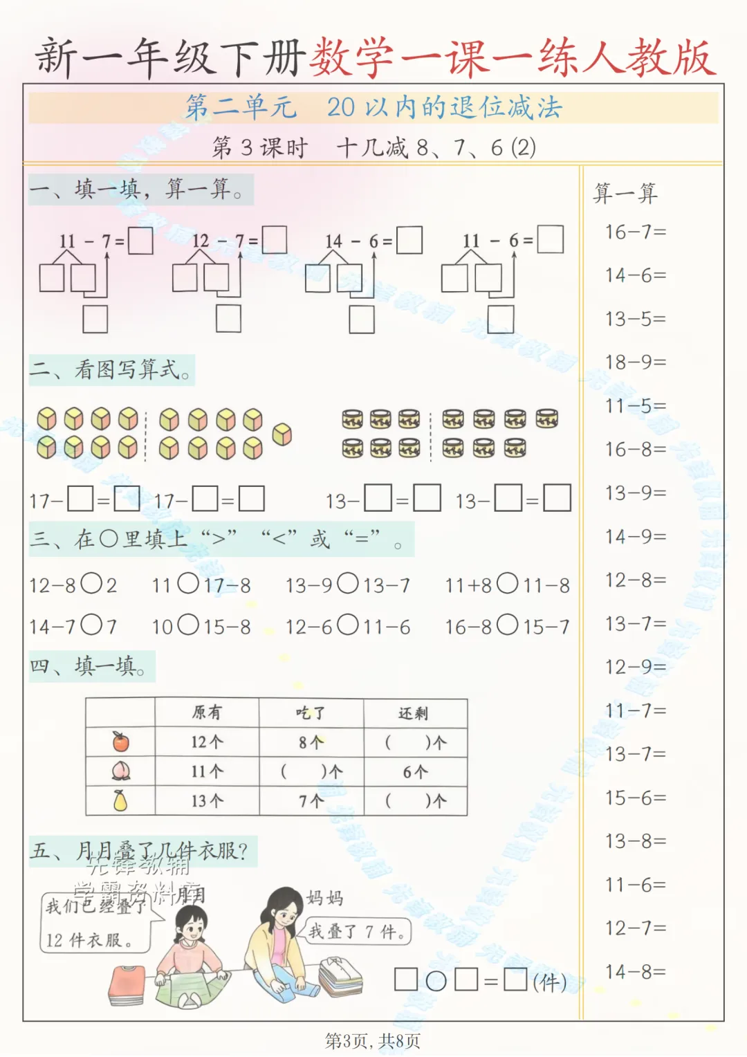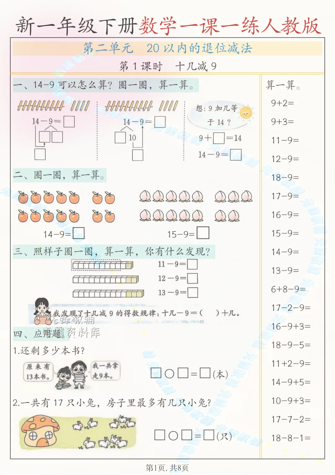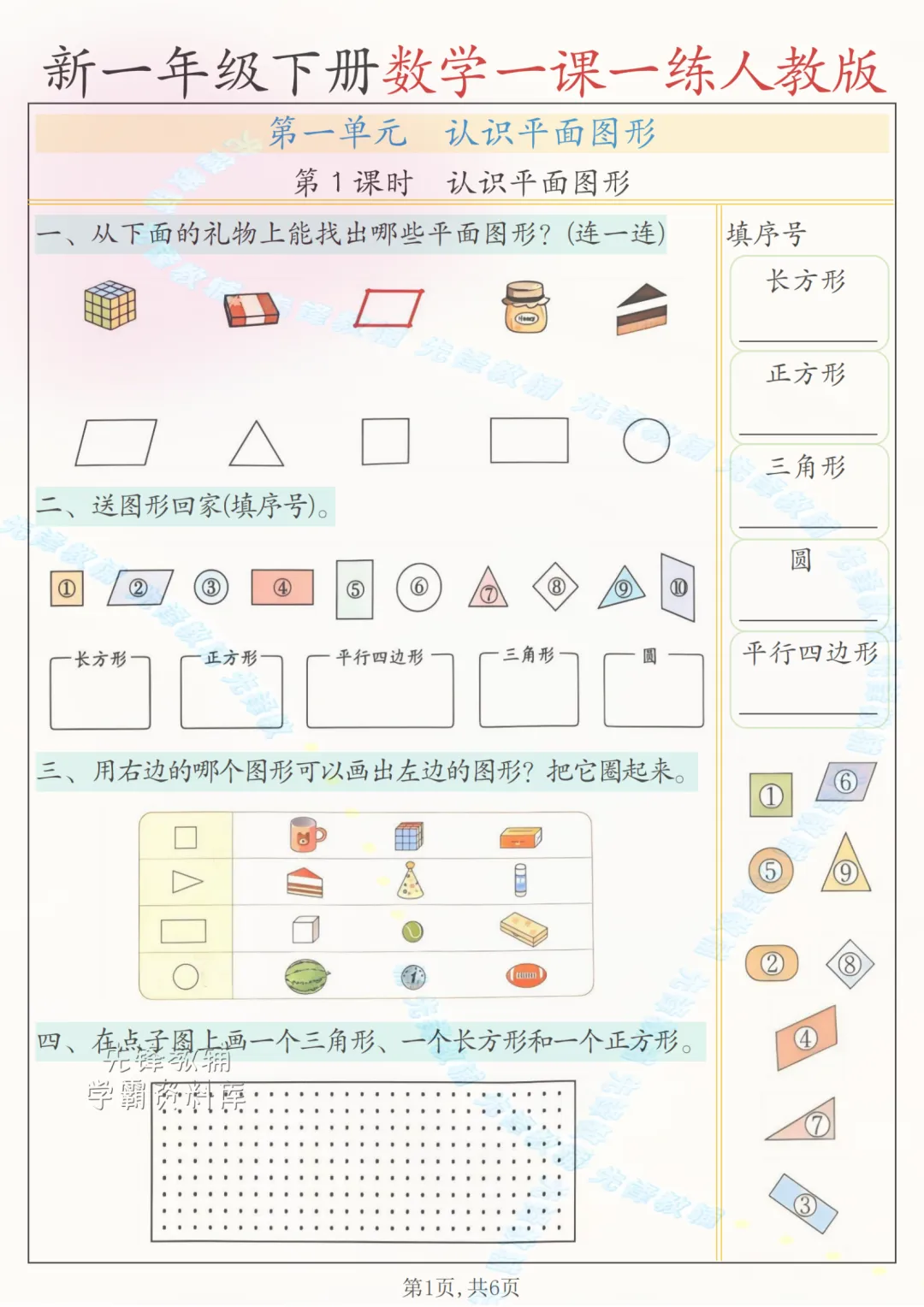 2026一年级下册数字(一课一练)电子版可打印
