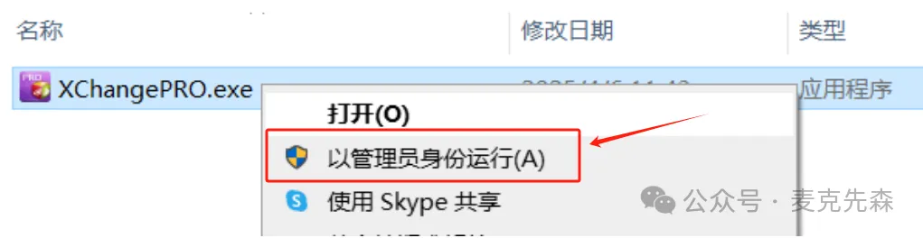 2.打开解压后的文件夹,找到【XChangePRO.exe】应用程序,右键选择【以管理员身份运行】。