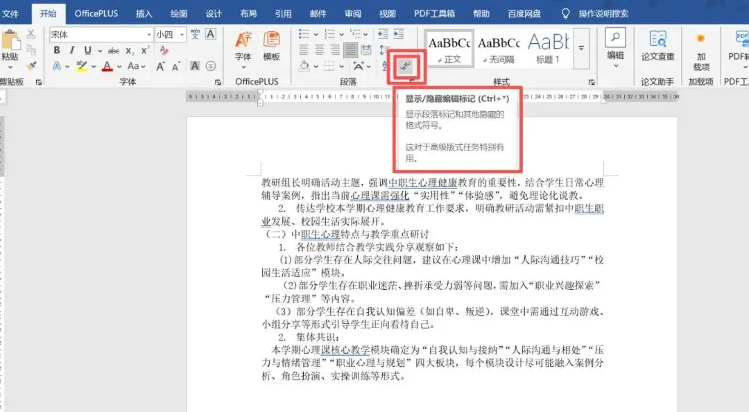 点击开始选项卡中的段落标记图标
