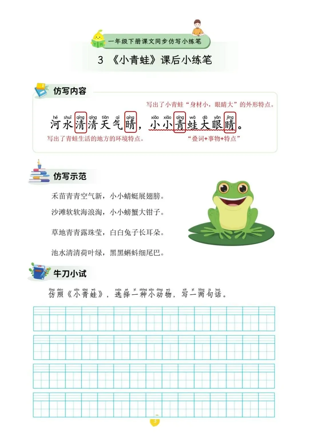 一年级下册课文同步仿写小练笔 ,电子版可打印