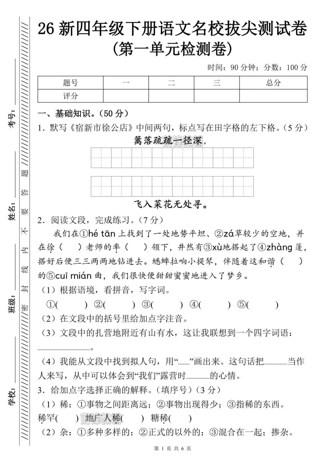 本文最后更新于2026-03-10,某些文章具有时效性,若有错误或已失效,请在下方留言或联系老夜。 四年级下册语文第一单元测试卷!电子版可打印 这学期新试卷,第一单元各版本原创试卷已更新,需要打印的家长滑至文末👇