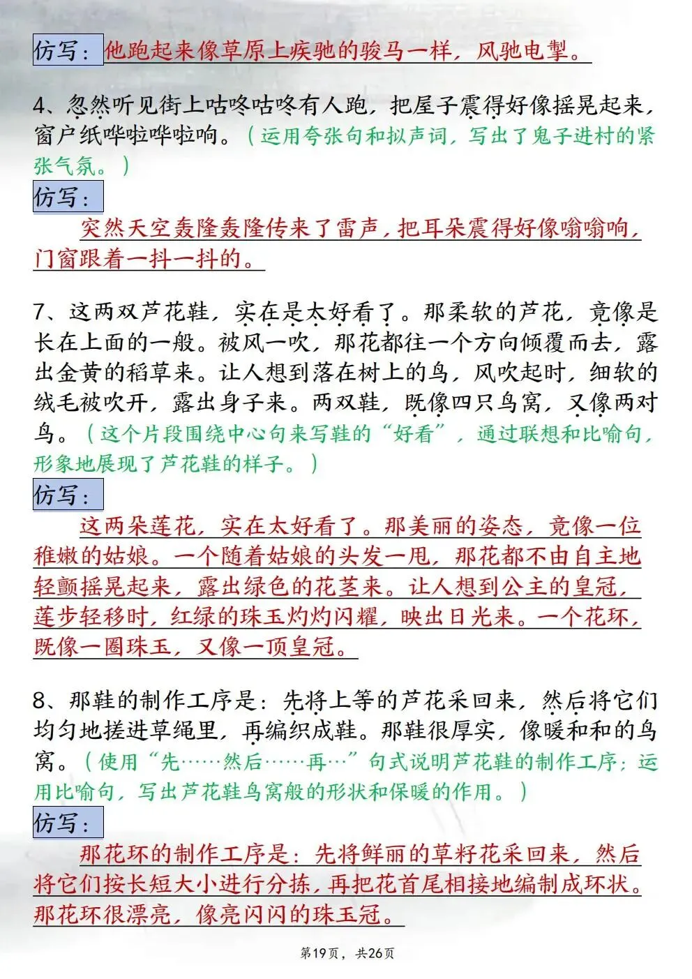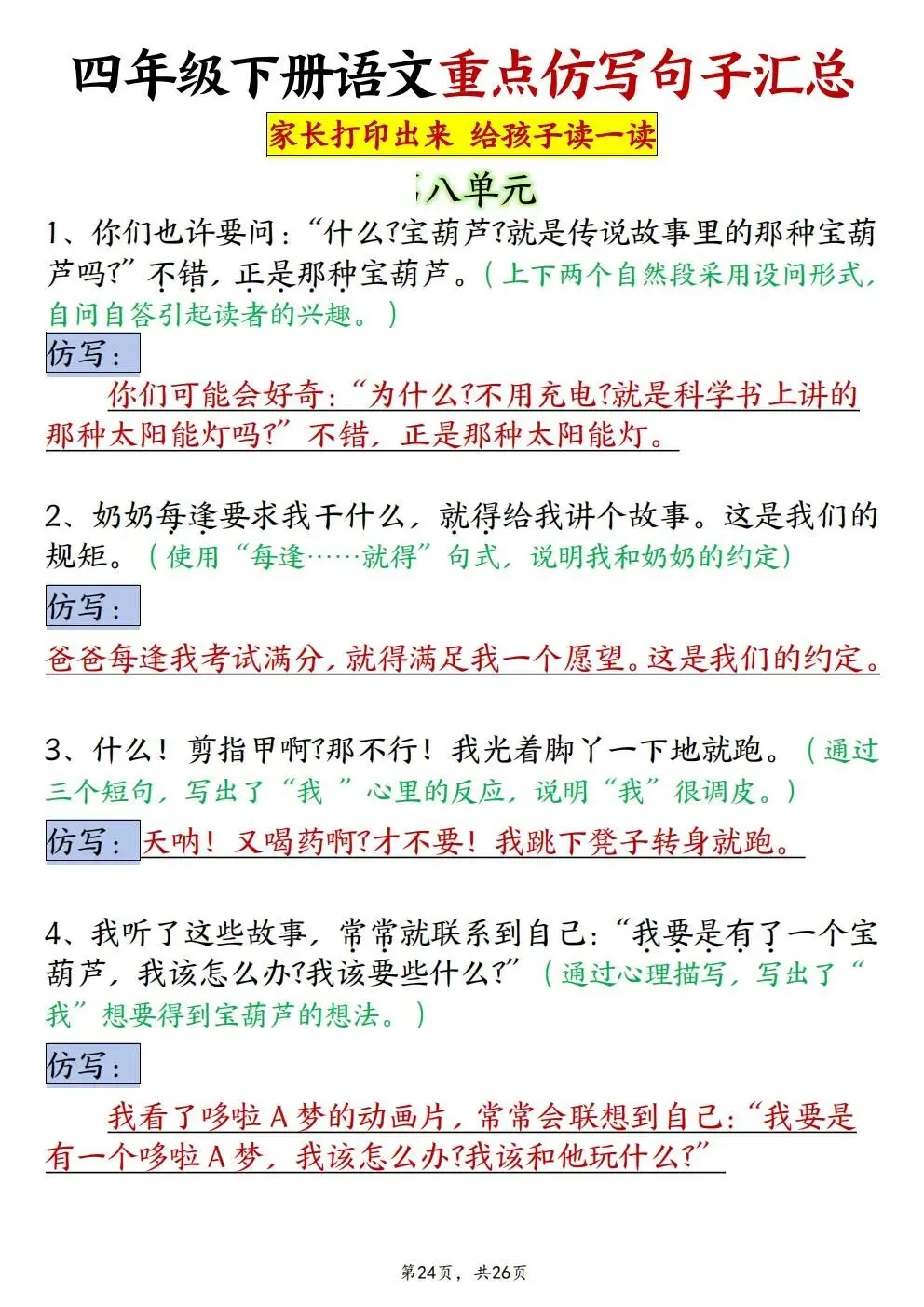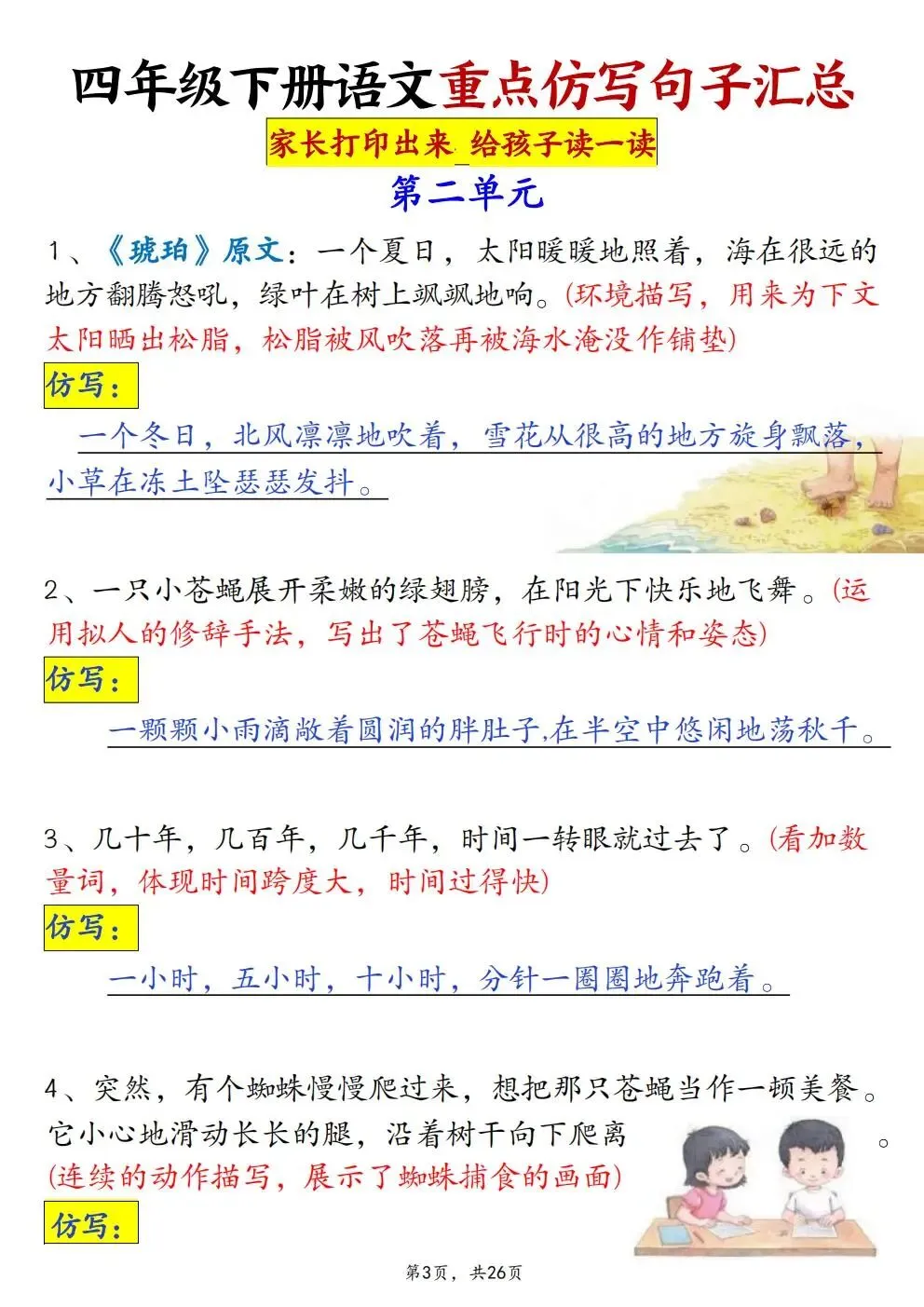 四年级下册语文重点仿写句子汇总(电子版可打印)