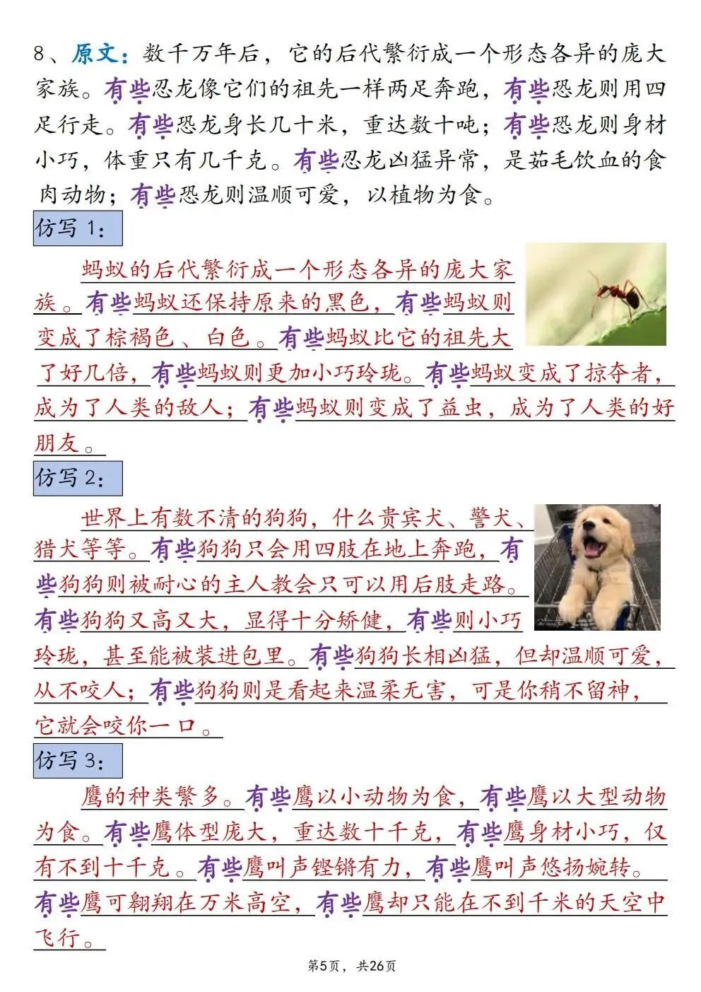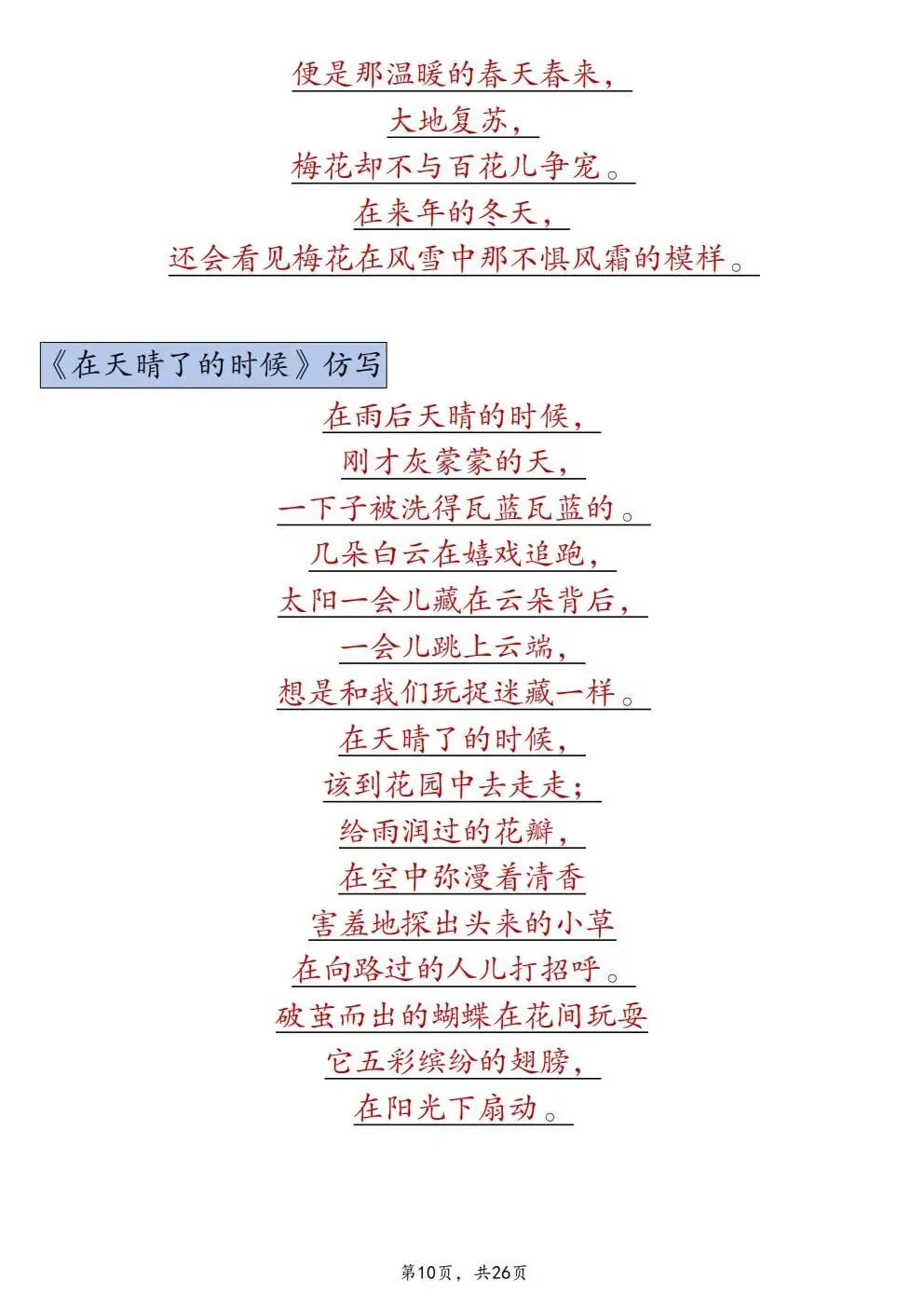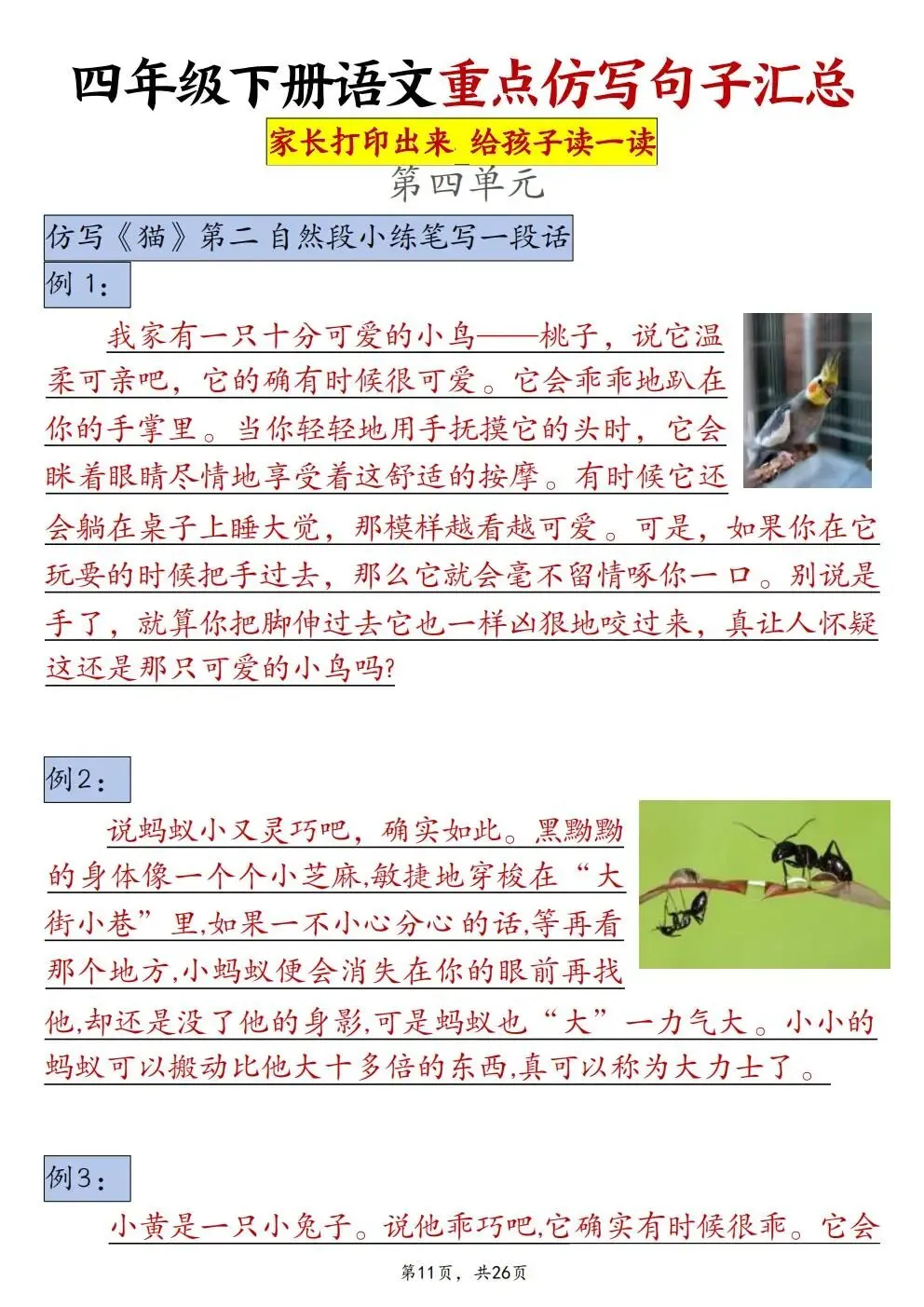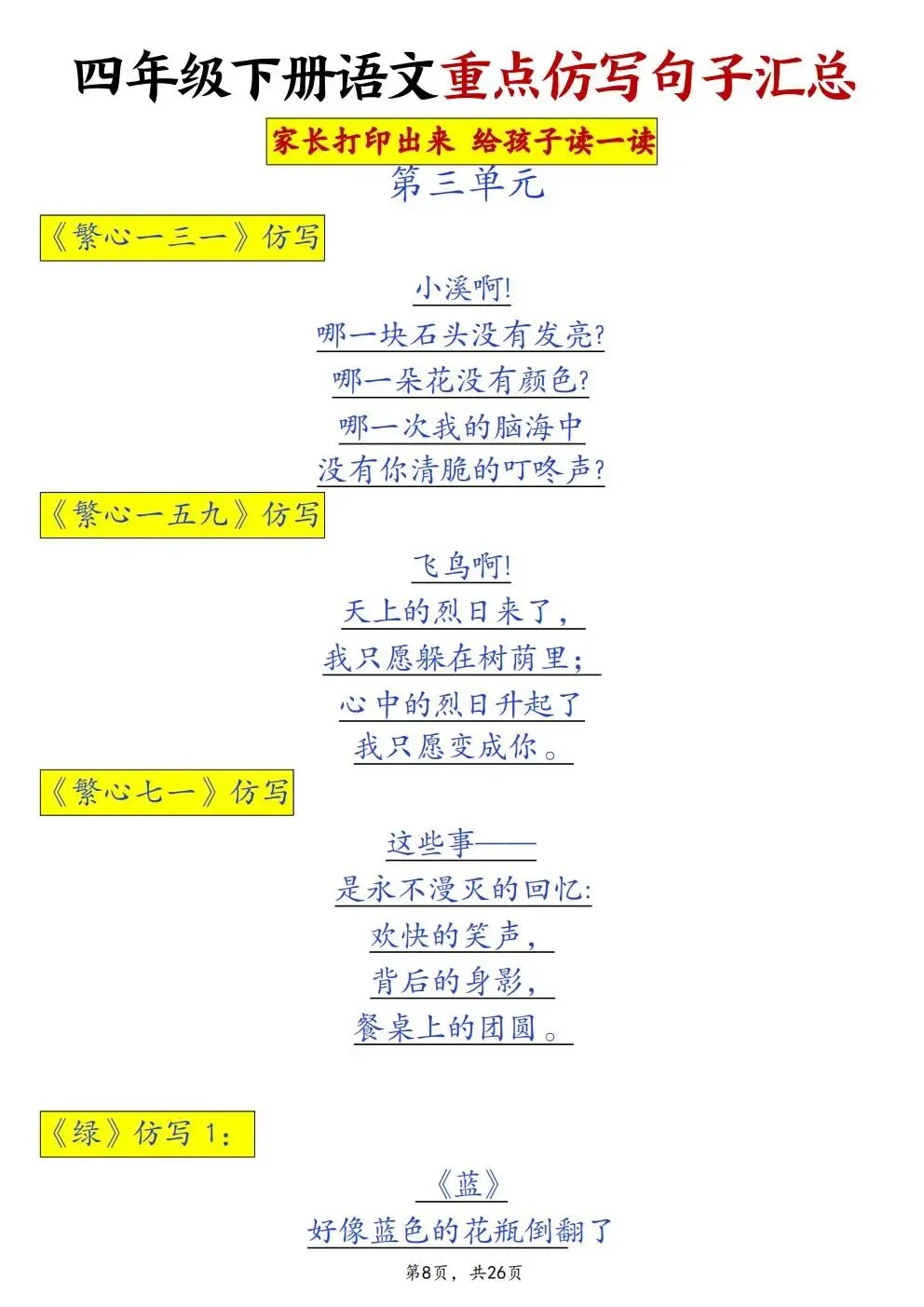 四年级下册语文重点仿写句子汇总(电子版可打印)