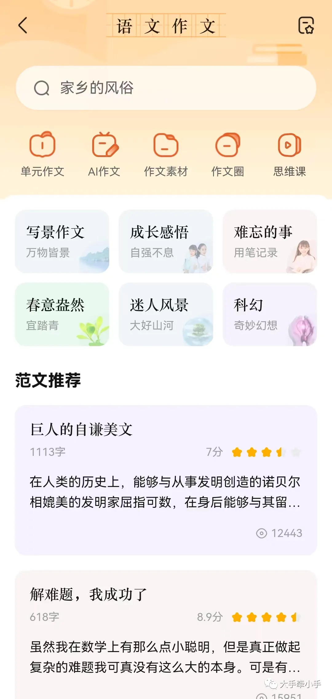 此外,app里竟然还有语文作文和英语作文专项辅导,有丰富的范文和写作素材可以学习积累。