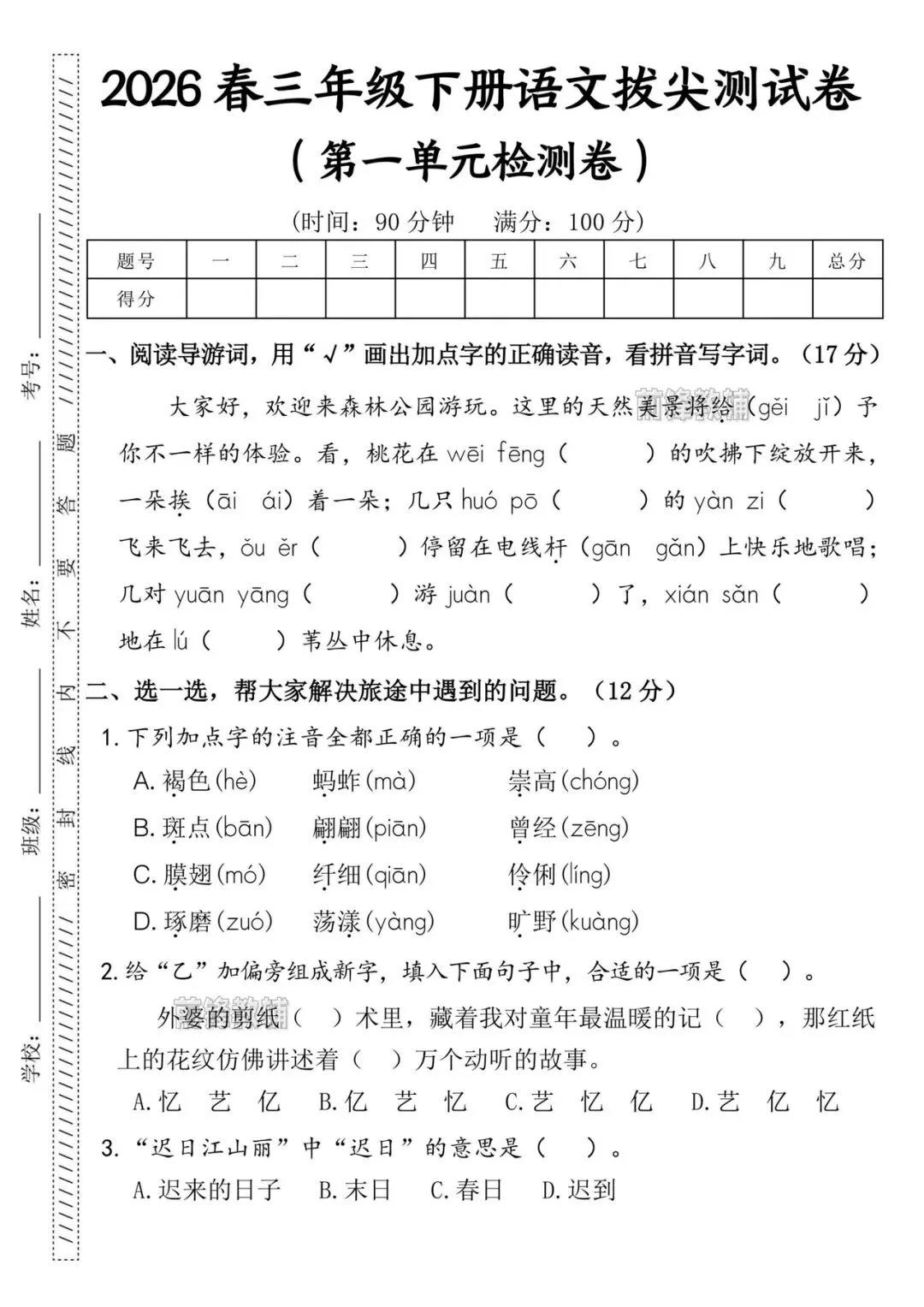本文最后更新于2026-03-10,某些文章具有时效性,若有错误或已失效,请在下方留言或联系老夜。 三年级下册语文第一单元测试卷!电子版可打印 这学期新试卷,第一单元各版本原创试卷已更新,需要打印的家长滑至文末👇