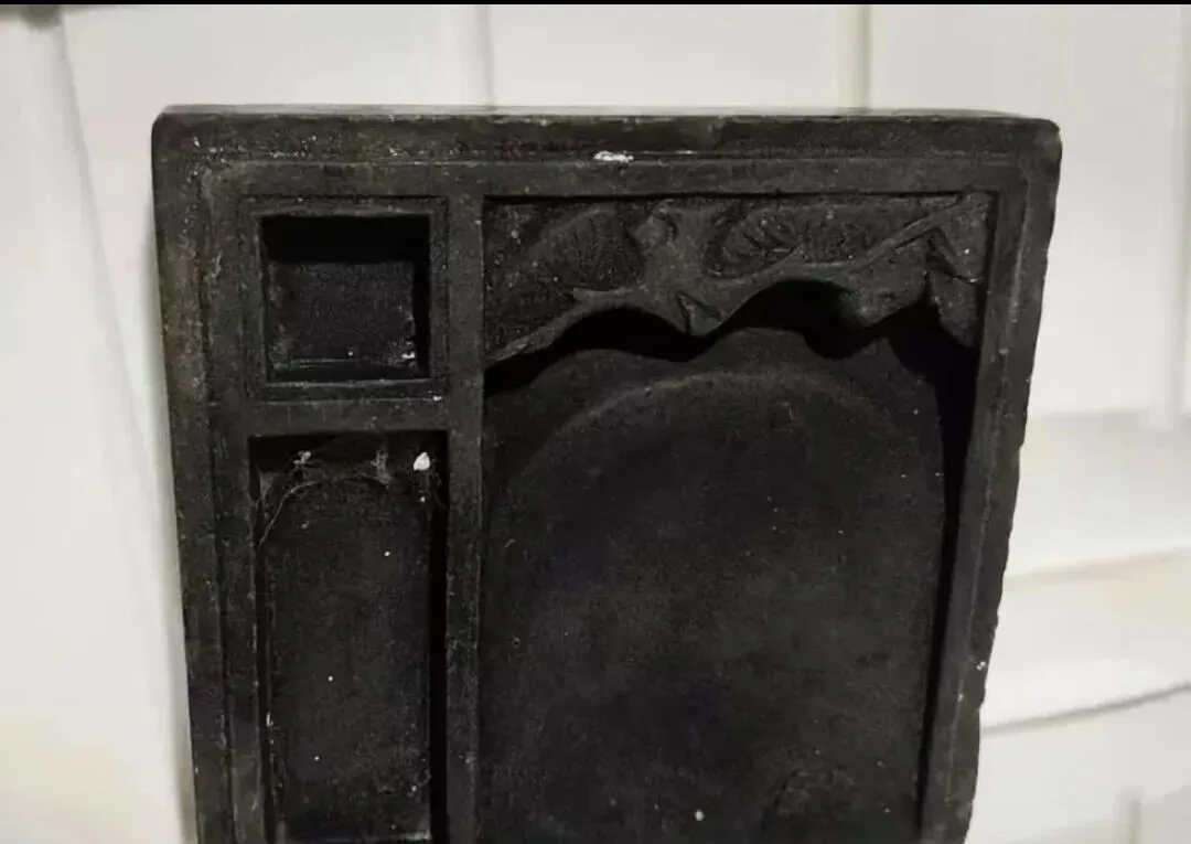 这个方方正正黑乎乎的叫砚台,一边是磨墨的洼池,一边分了几个小格子放水放墨块,边沿上还压着几片花叶的浅雕,读书那会儿我把墨条在砚上一圈一圈推,水面慢慢发黑,鼻子尖上是淡淡的墨香,爷爷看我磨得带劲,笑着说别太稀,写起来就发虚了,夜里煤油灯一亮,纸面是黄的,字落下去是亮黑的,现在圆珠笔自动铅笔往笔筒里一插,砚台退居抽屉深处,偶尔翻出来摸一把,指腹还能蹭下一层细细的墨粉。