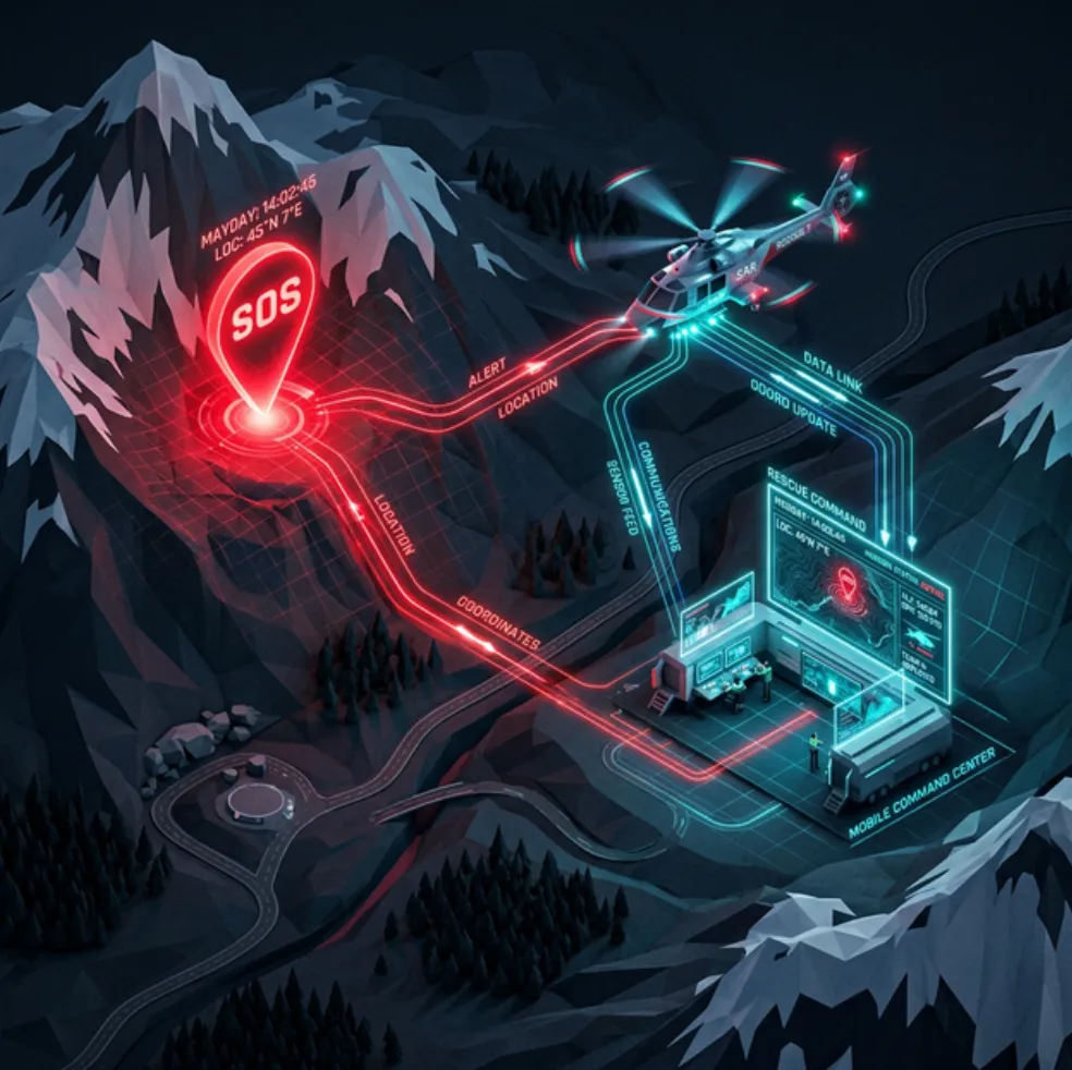 │ 场景一:用户在无信号区域触发 SOS │