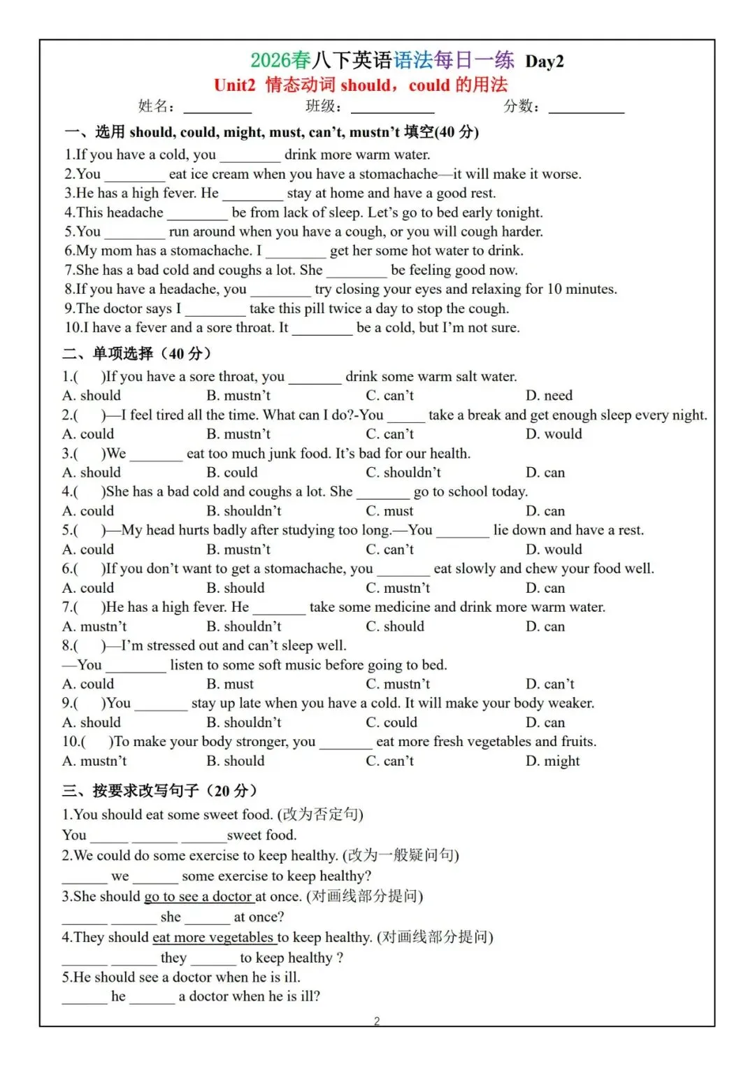 2026春八下英语语法每日一练(电子版可打印)