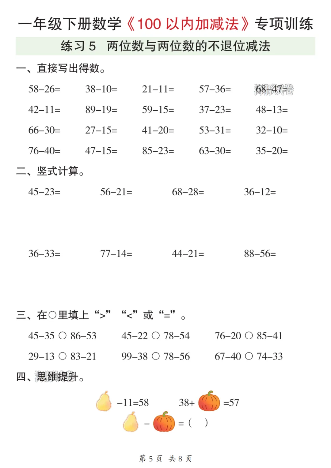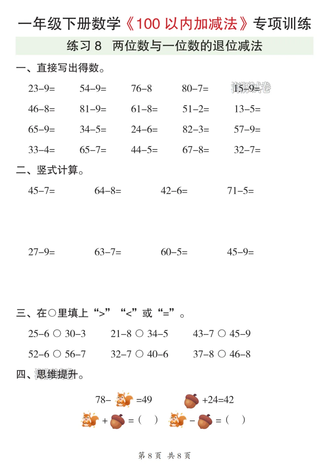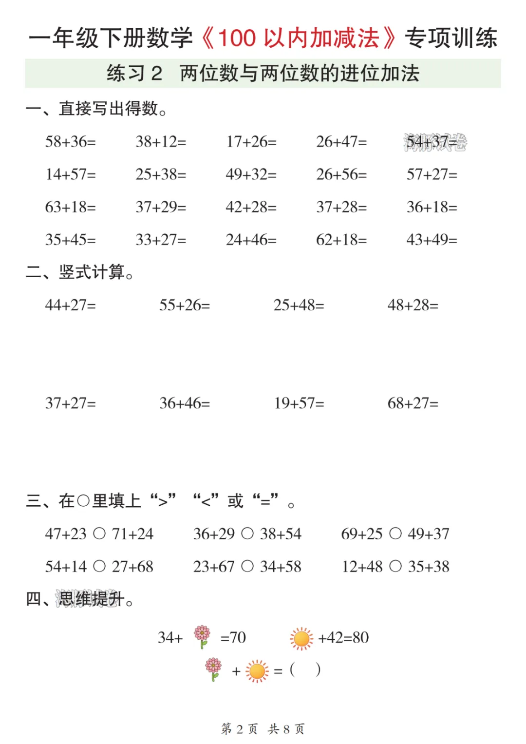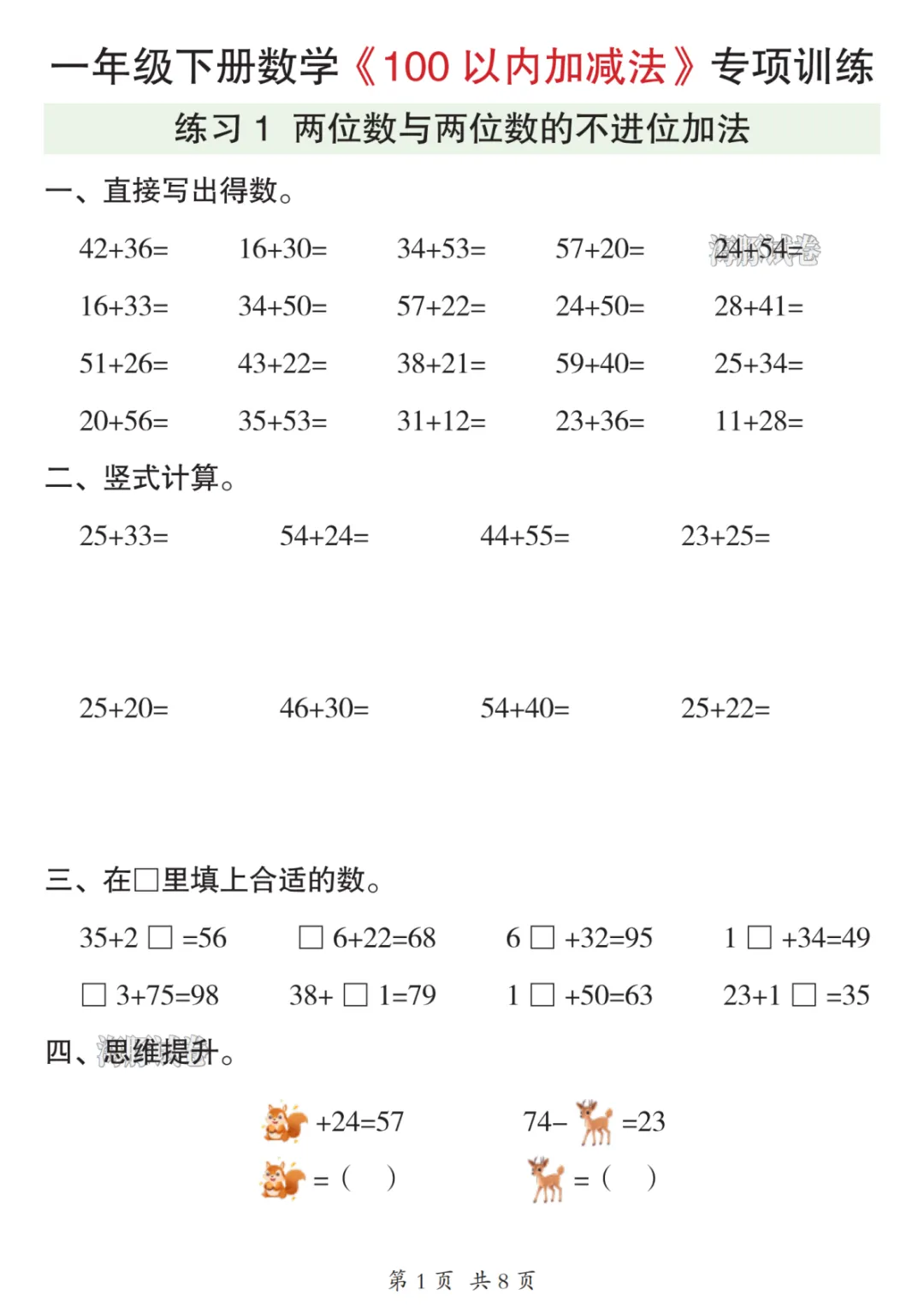 本期分享的是26年一年级数学下册《100以内加减法》可下载打印,需要的家长赶紧打印给孩子练一练,巩固知识。