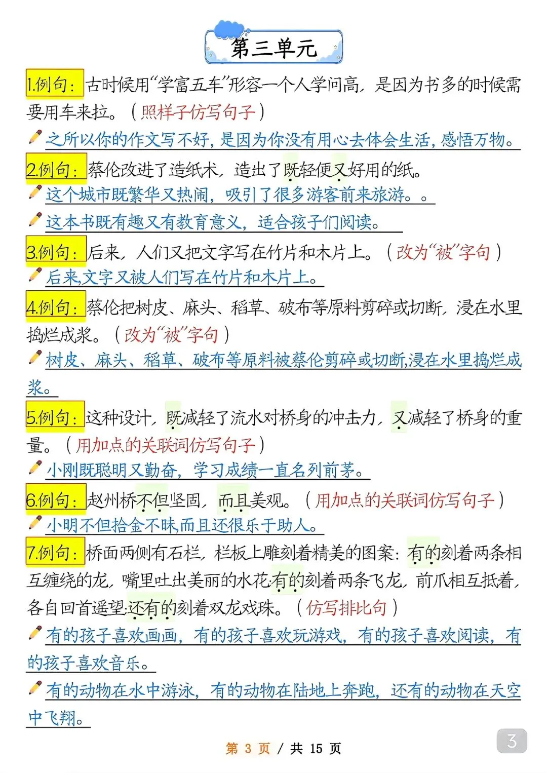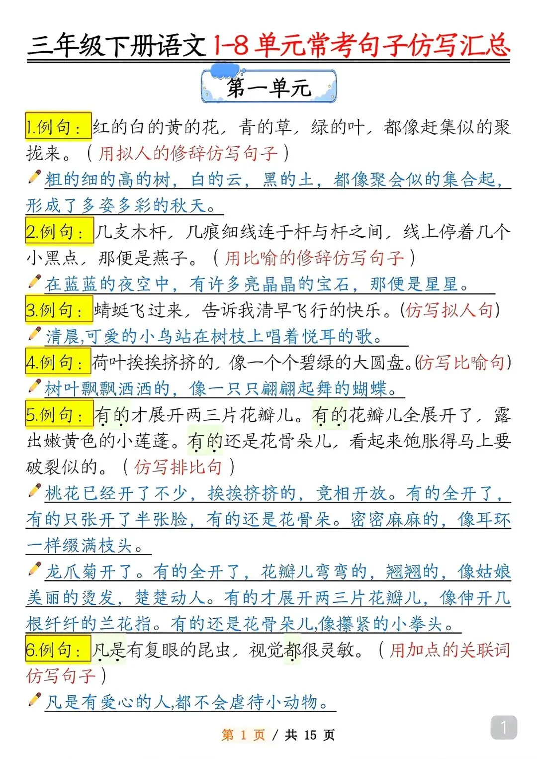 三年级下册语文句子仿写(高清电子版可打印)