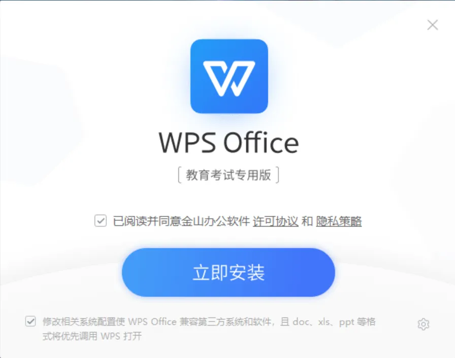 需要说明的是,红色和蓝色版本的WPS本质上是相同的软件,安装蓝色版本相当于对WPS进行升级。因此,考生无需卸载系统自带的WPS版本,安装新的蓝色版本后也不会丢失任何数据,大家可以放心安装。