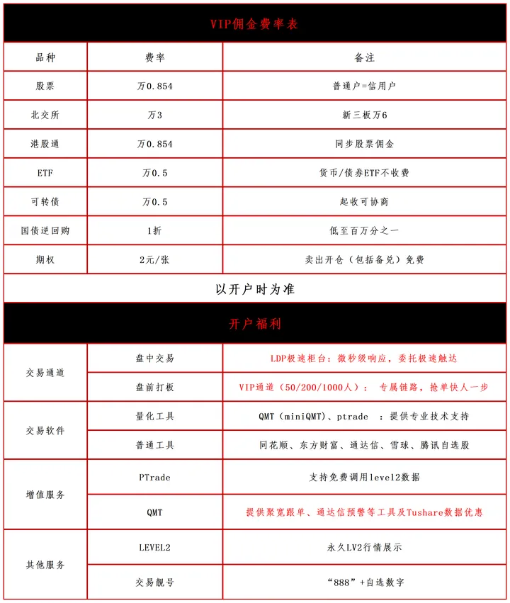 券商官方QMT、PTrade终端完全免费,仅收取证券交易正常佣金,无任何软件使用费、服务费,第三方所谓的量化会员费、策略费均为骗局,请勿相信。