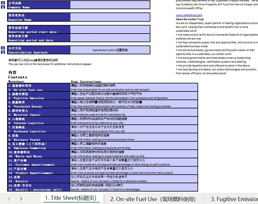 中国中小企业碳足迹核算Excel自动计算表(碳足迹核算:中国中小企业(SME)碳报告工具)