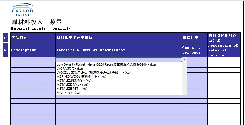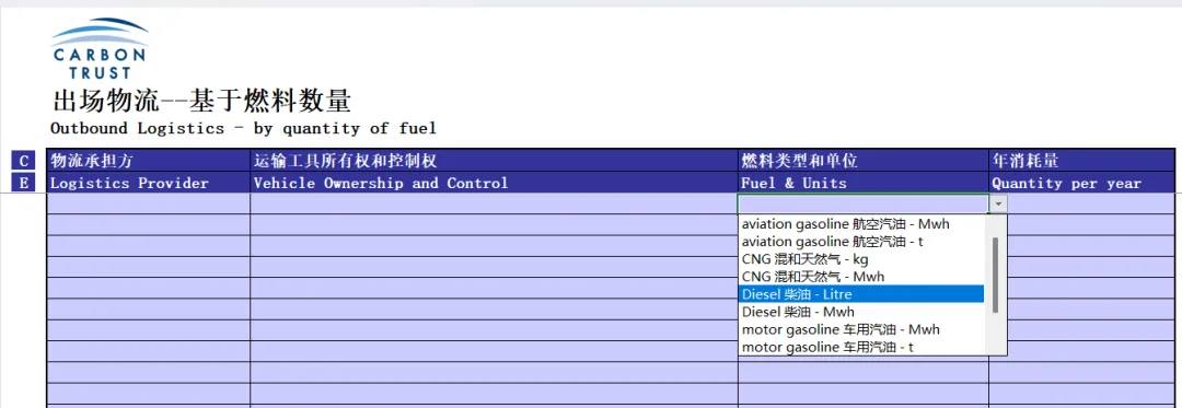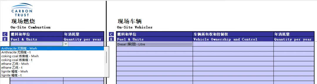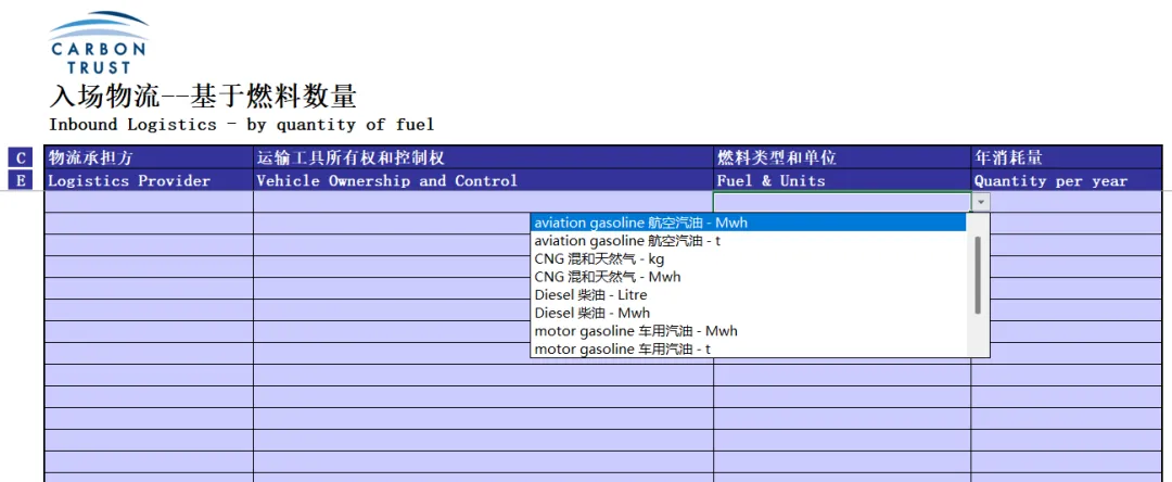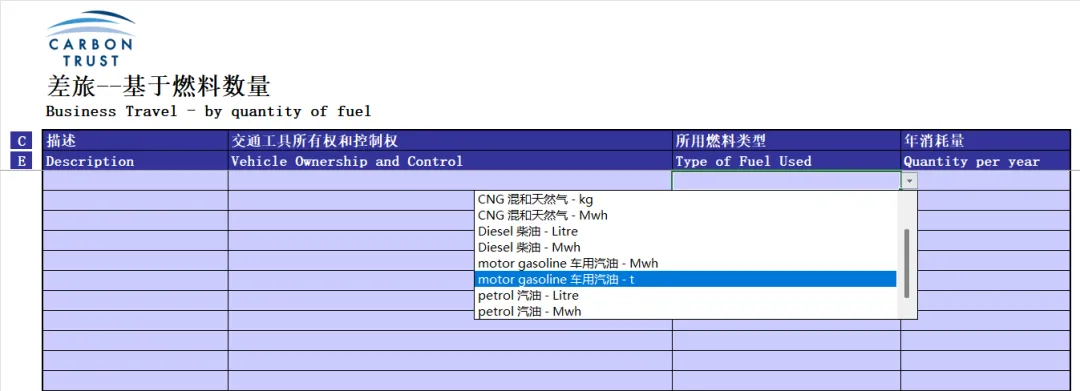 表格用途:中国中小企业收集数据来计算、管理并报告其企业的碳足迹。将数据输入碳报告工具,自动出结果。公众号:3060碳达峰碳中和