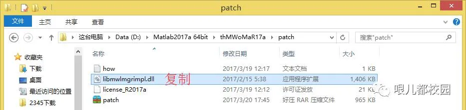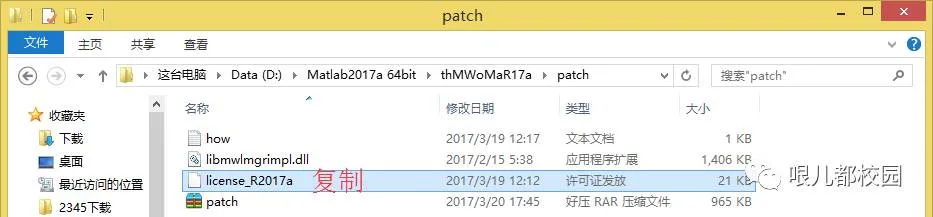 16.再次打开“thMWoMaR17a”>>“patch”文件夹,复制“license_R2017a.lic”文件